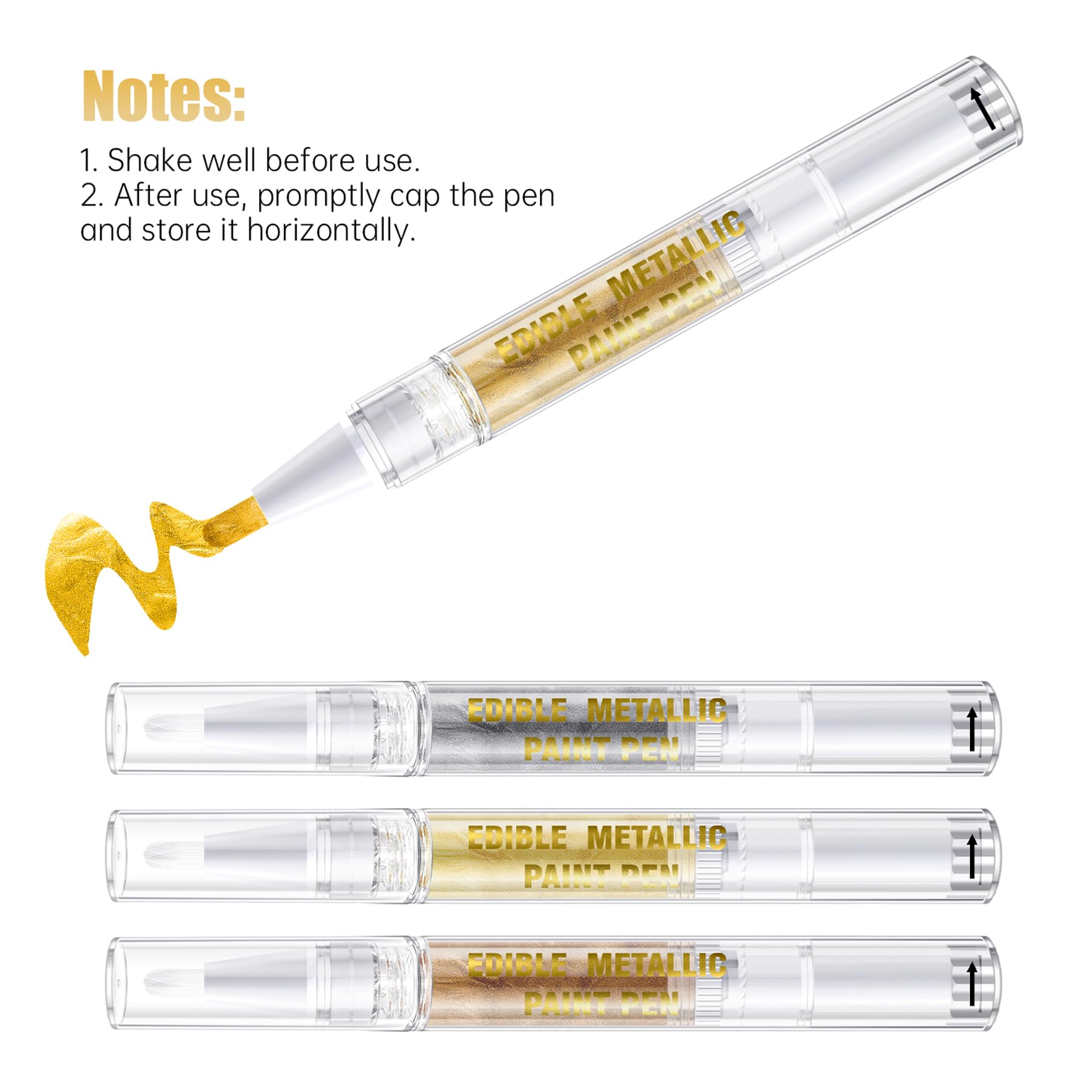Q: Does the Edible Metallic Glitter Paint come with any accessories?A: Yes, each set of Edible Metallic Glitter Paint includes a brush, allowing for easy and precise application on your baked creations.