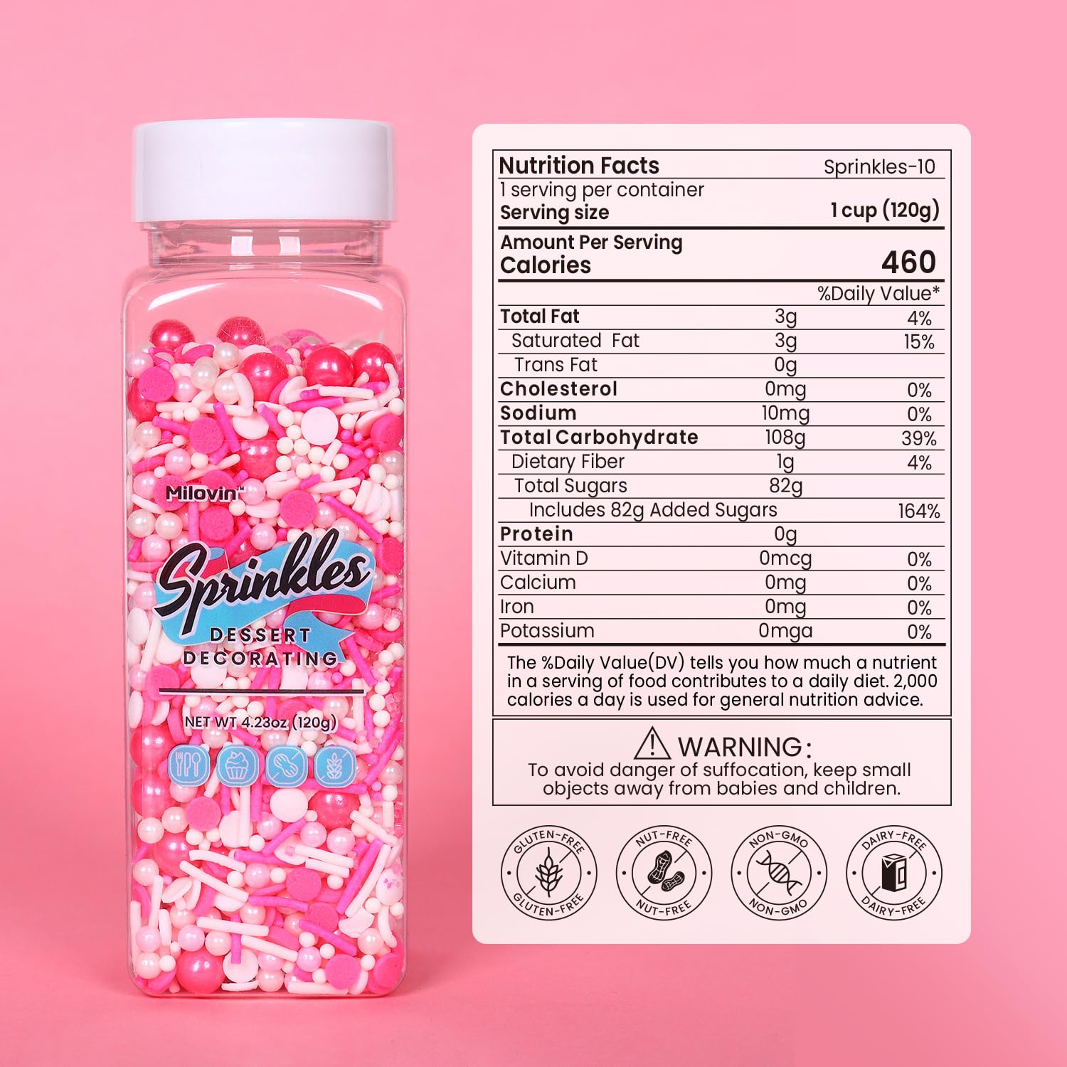 Q: Can these sprinkles be used for all types of desserts?A: Yes, these pink sprinkles are versatile and can be used for decorating cakes, cupcakes, cookies, ice cream, cake pops, brownies, and any other desserts you can imagine.