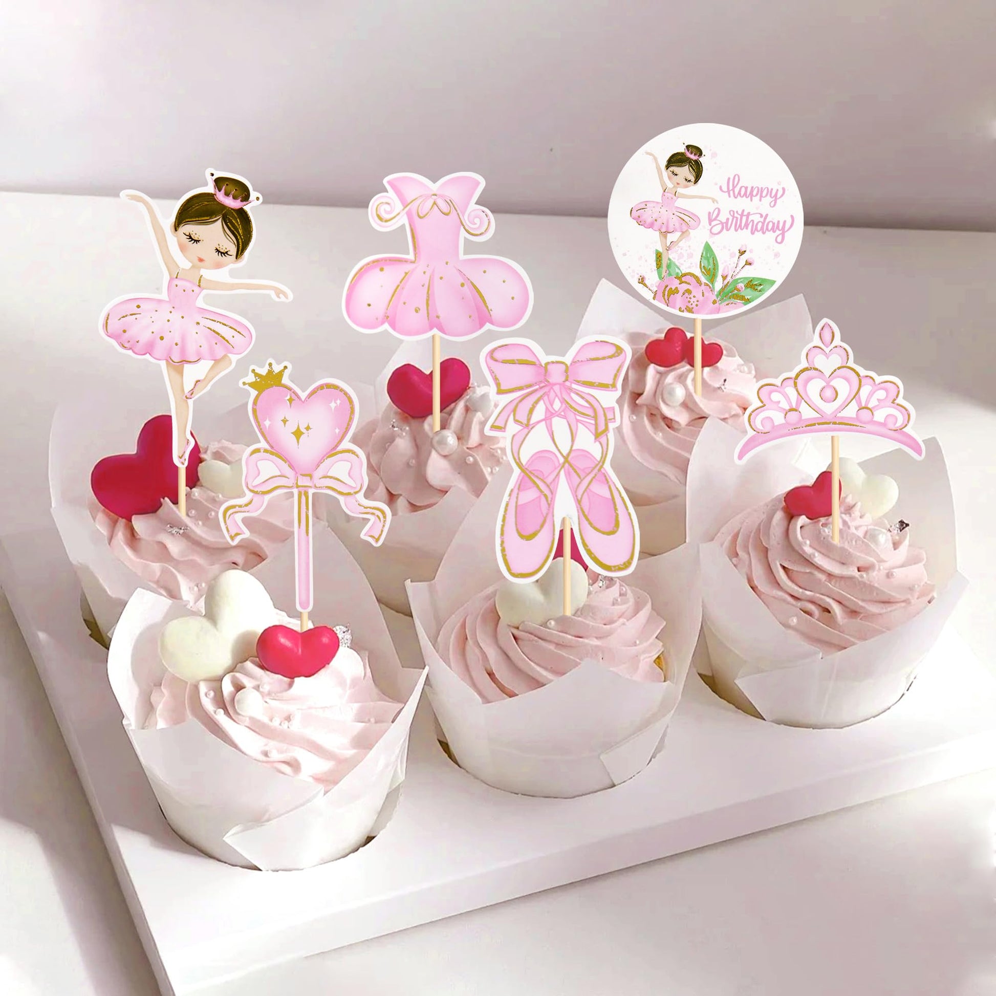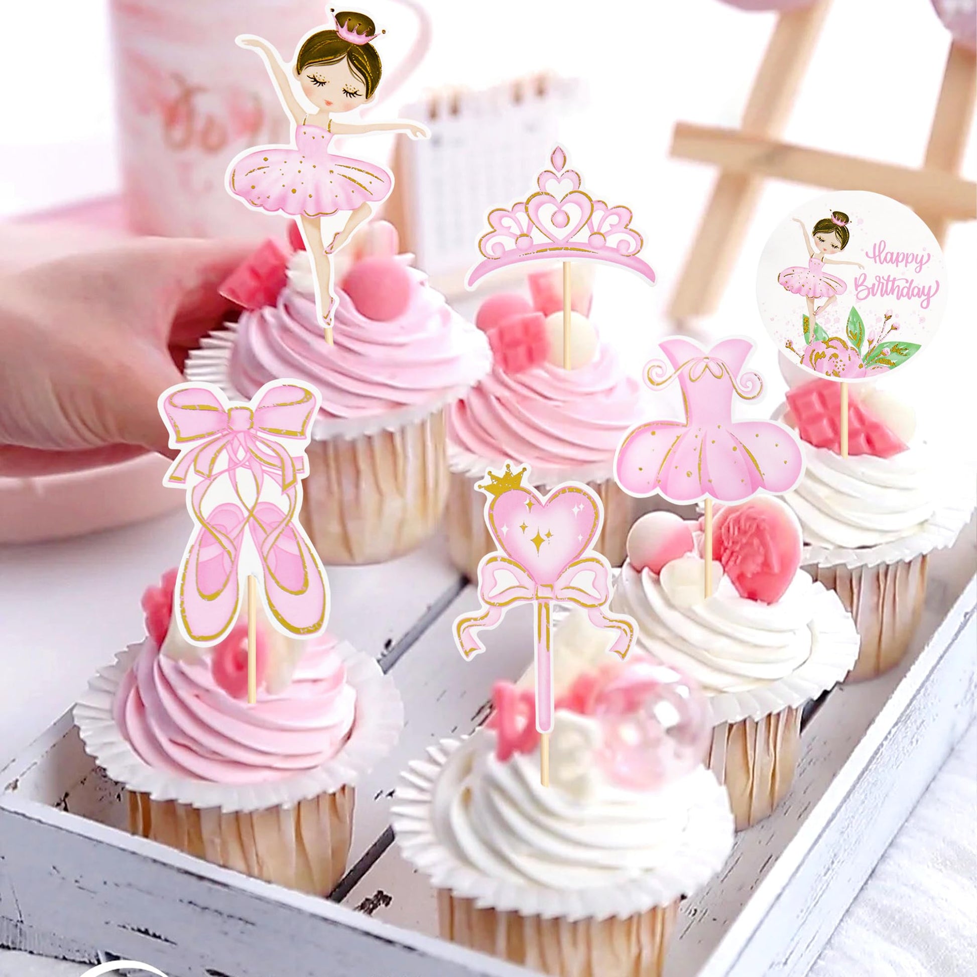 Q: Can these cupcake toppers be used for other types of parties besides a ballerina theme?A: Yes, these cupcake toppers are versatile and can be used for various occasions, including baby showers, bridal showers, girl birthday parties, and wedding celebrations, adding a delightful touch to any dessert.