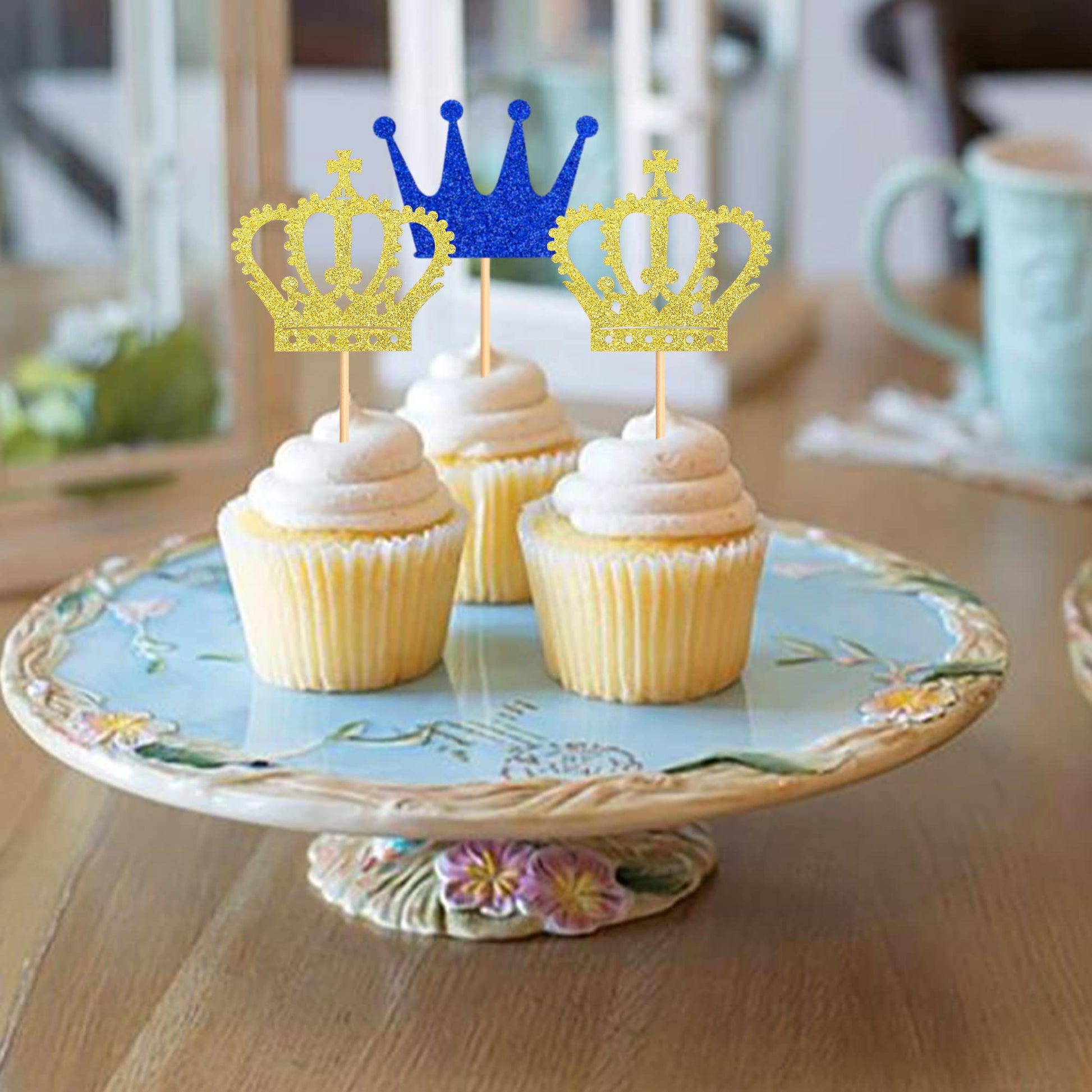Q: What occasions are these cupcake toppers suitable for?A: These cupcake toppers are perfect for various celebrations, including little boys' prince-themed birthday parties, crown-themed gender reveal parties, first birthday parties, weddings, and anniversaries.