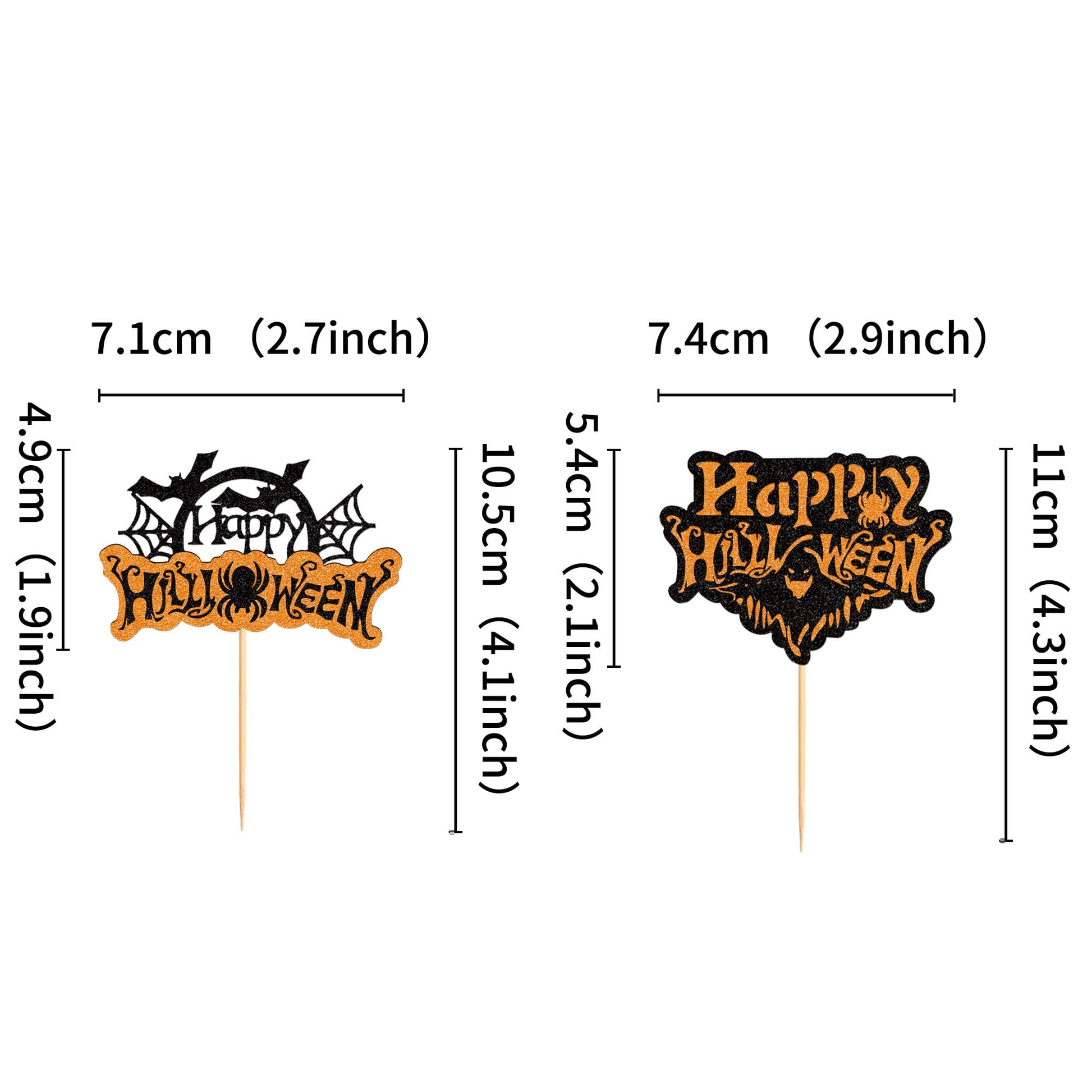 Ercadio 24 Pack Halloween Cupcake Toppers Halloween Cupcake Picks - Material: 300G Glitter Card-Stock And Toothpicks Stick,Non-Toxic,Eco-Friendly, Biodegradable. - Package: Pack Of 24Pcscupcake Toppers,24Pcs Wood Stick, - Size:1.6 *1.6 /2.2 *1.8 /2.2 *5.1 /2.1 *2/1.9 *2.4 /2 *2 (Not Including Stick) - Perfect For Halloween Theme Party,Baby Shower Party,Birthday Theme Party Cupcake Decorations Supplies. - Great Accessory For Cupcakes,Cakes,Ice Cream,Fruit,Dessert,Cheese,And Any Food You Want To Dress Up. - 100% Satisfaction Guarantee-We Value Every Customer'S Shopping Experience And 100% Support Customer Refunds When Unsatisfied.No-Risk For All Our Customers. - Friendly Reminder:Designed For Single-Sided,Another Side Is Plain White. If You Have Any Problems,Please Contact Us, We Will Try Our Best To Solve Your Problem Within 24 Hours. Note: 1. Return Policy: You Can Return The Item If Not Satisfied, But Please Kindly Contact Us First, So That We Can Deal With It Immediately Until You Are Satisfied. 2. Color Might Be Slightly Different Due To The Color Calibration Of Each Individual Monitor. 3. Please Allow The Tiny Measuring Deviation Due To Manual Measurement. 4. Thanks For Your Understanding And Enjoy Your Shopping Moment! About Ercadio The Ercadio Is The Registered Brand (Ser. No. 88-495,201),Which Is The Original Manufacturer For The Cupcake Toppers And Party Cake Decoration. We Offer The Customized Service For Many Wholesalers And Retailers. We Are Rich In Experience With Advanced Management System & Quality Control System, So We Always Offer High Quality Products To All Customers. It Is Our Final Goal To Make Your Party Happy !