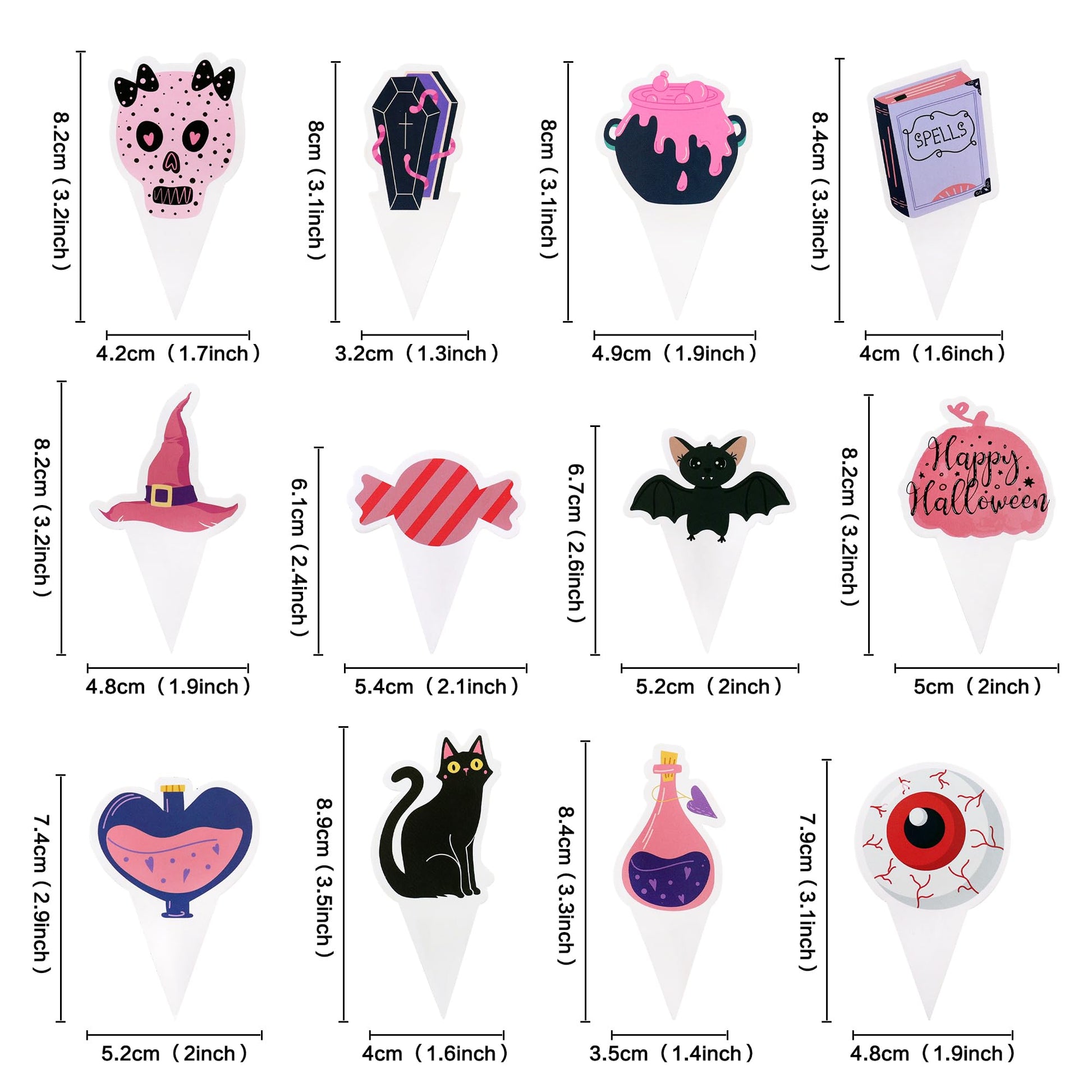Ercadio 24 Pack Pink Halloween Cupcake Toppers - Material: 300G Glitter Card-Stock And Toothpicks Stick,Non-Toxic,Eco-Friendly, Biodegradable. - Package: Pack Of 24 Pcs Cupcake Toppers,12 Designs And Each For 2 Pcs.Hand Size: 3.1*4.3 Inch / 2.4*4.9 Inch / 2.1*4.9 Inch / 1.8*4.7 Inch /(Including Stick). - Perfect For Halloween Theme Party,Baby Shower Party,Birthday Theme Party Cupcake Decorations Supplies. - Great Accessory For Cupcakes,Cakes,Ice Cream,Fruit,Dessert,Cheese,And Any Food You Want To Dress Up. - 100% Satisfaction Guarantee-We Value Every Customer'S Shopping Experience And 100% Support Customer Refunds When Unsatisfied.No-Risk For All Our Customers. - Friendly Reminder:Designed For Single-Sided,Another Side Is Plain White. If You Have Any Problems,Please Contact Us, We Will Try Our Best To Solve Your Problem Within 24 Hours. Note: 1. Return Policy: You Can Return The Item If Not Satisfied, But Please Kindly Contact Us First, So That We Can Deal With It Immediately Until You Are Satisfied. 2. Color Might Be Slightly Different Due To The Color Calibration Of Each Individual Monitor. 3. Please Allow The Tiny Measuring Deviation Due To Manual Measurement. 4. Thanks For Your Understanding And Enjoy Your Shopping Moment! About Ercadio The Ercadio Is The Registered Brand (Ser. No. 88-495,201),Which Is The Original Manufacturer For The Cupcake Toppers And Party Cake Decoration. We Offer The Customized Service For Many Wholesalers And Retailers. We Are Rich In Experience With Advanced Management System & Quality Control System, So We Always Offer High Quality Products To All Customers. It Is Our Final Goal To Make Your Party Happy !