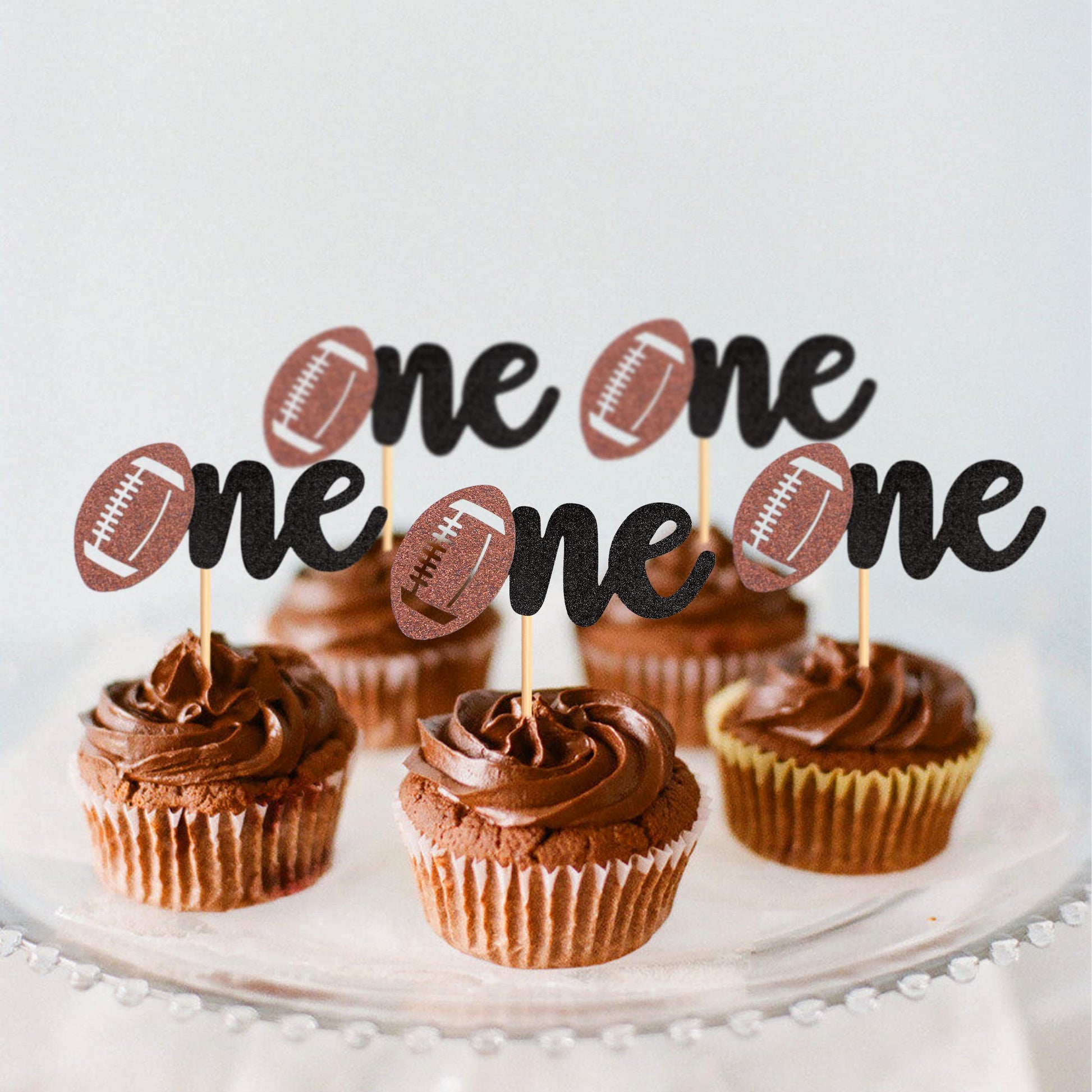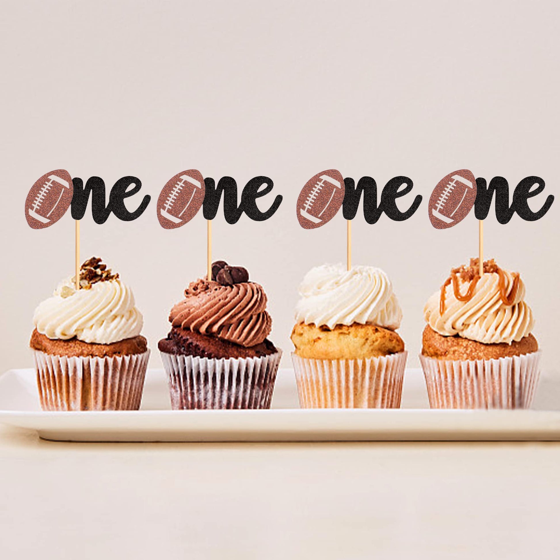 Ercadio 24 Pack Rugby One Cupcake Toppers Glitter American Football 1St Birthday Cupcake Picks Features: - Material: 300G Cardstock And Toothpicks Stick,Non-Toxic,Eco-Friendly, Biodegradable. -Package/Size :Pack Of 24Pcs ,Size:2*4.5Inch(Including Sticks) -Perfect For: American Football Oh Baby Party,Rugby Lover Theme Party,Gender Reveal Baby Shower Theme Party,Sports Fans Party,Baby Birthday Party Decor -- Great Accessory For Cupcakes,Cakes,Ice Cream,Fruit,Dessert,Cheese,And Any Food You Want To Dress Up. - Friendly Reminder:Designed For Single-Sided,Another Side Is Plain White. If You Have Any Problems,Please Contact Us, We Will Try Our Best To Solve Your Problem Within 24 Hours. Note: 1. Return Policy: You Can Return The Item If Not Satisfied, But Please Kindly Contact Us First, So That We Can Deal With It Immediately Until You Are Satisfied. 2. Color Might Be Slightly Different Due To The Color Calibration Of Each Individual Monitor. 3. Please Allow The Tiny Measuring Deviation Due To Manual Measurement. 4. Thanks For Your Understanding And Enjoy Your Shopping Moment! About Ercadio The Ercadio Is The Registered Brand (Ser. No. 88-495,201),Which Is The Original Manufacturer For The Cupcake Toppers And Party Cake Decoration. We Offer The Customized Service For Many Wholesalers And Retailers. We Are Rich In Experience With Advanced Management System & Quality Control System, So We Always Offer High Quality Products To All Customers. It Is Our Final Goal To Make Your Party Happy !
