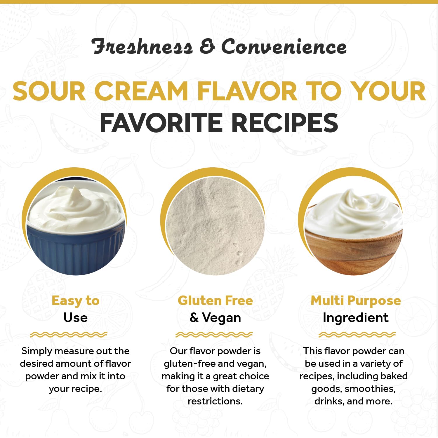 Q: How do I use Fanale Premium Sour Cream Mix in my baking?A: To use the Sour Cream flavor powder in baking, simply measure out the desired amount and mix it into your recipe. There's no need to chop or blend any actual sour cream, as the powder provides all the necessary flavor in a convenient form.
