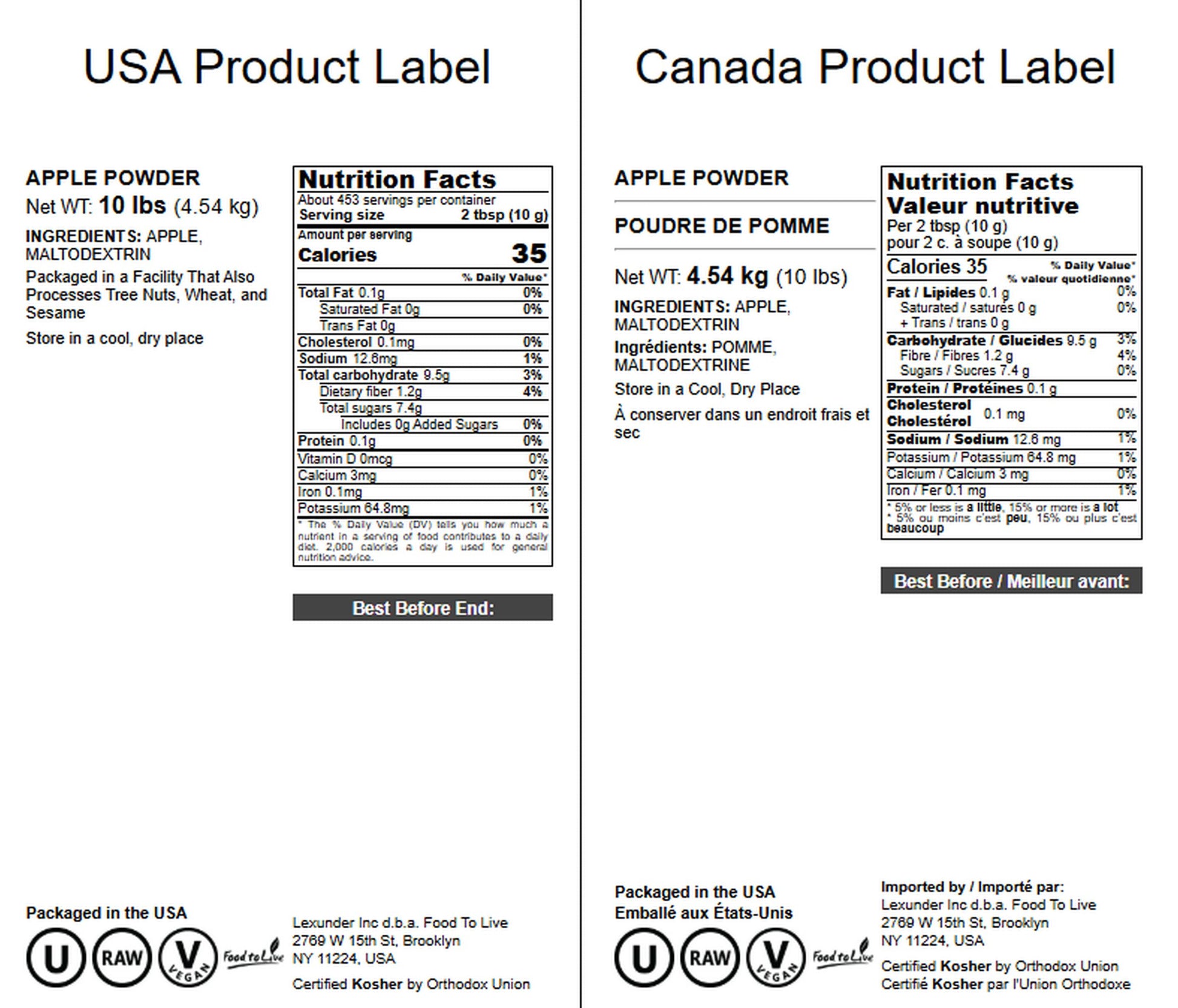 Premium Quality, Kosher, Vegan: Apple Powder By Food To Live Is A Premium Quality Product Which Is Kosher, Suitable For A Vegan Diet, And Is Trans-Fat Free. | Made From Whole Apples: Unlike Apple Juice Powder, This Powder Is Produced From Whole Freeze-Dried Apples, Therefore, The Maximum Amount Of Valuable Nutrients Found In Apples Are Retained. | Highly Nutritious, Rich In Fiber: This Powder Is Packed With Nutrients Just As Fresh Apples. It Is A Good Source Of Fiber, Antioxidants, Essential Elements Like Iron, Copper, Potassium, Calcium, And Vitamins C, E, B1, B6, K. | Fresh Apples Substitute, Great For Baking: Apple Powder Has A Rich Flavor And Is An Amazing Substitute For Fresh Apples In Baked Goodies Since It Doesn