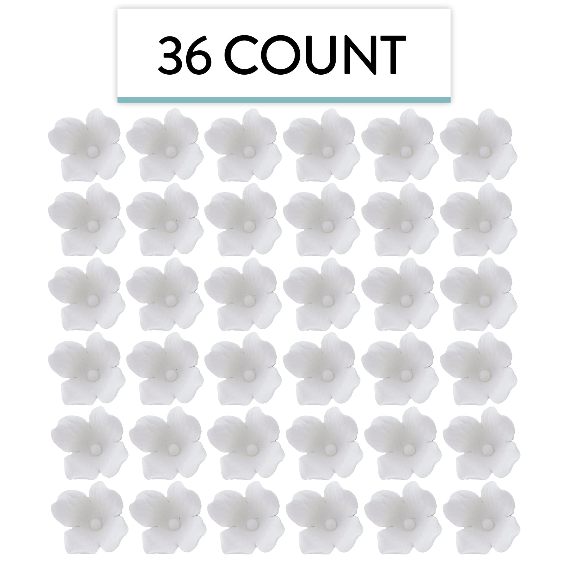 White Hydrangea by Chef Alan Tetreault. These realistic individual cake topper hydrangea blossoms can adorn cake or cupcake alike. Each flower is unwired and may be further colored by dusts or air brushing. Flower measures approximately 1 inch in diameter. Box of 36. Order in advance, they keep for years in a cool, dry and dark location. Easily Achieve Wonderful Results. These ready-made beautiful handmade gumpaste flowers are a perfect complement to any cake. Handmade from gumpaste, these flowers allow beginners or professional decorators alike to achieve wonderful results. Each flower is wired to use in a floral spray. Gumpaste flowers can be colored or highlighted using petal & luster dusts as well as airbrushing. . Global Sugar Art has a great reputation for secure packaging and reliable delivery, but some breakage is still possible. Please order extra to insure you have enough.