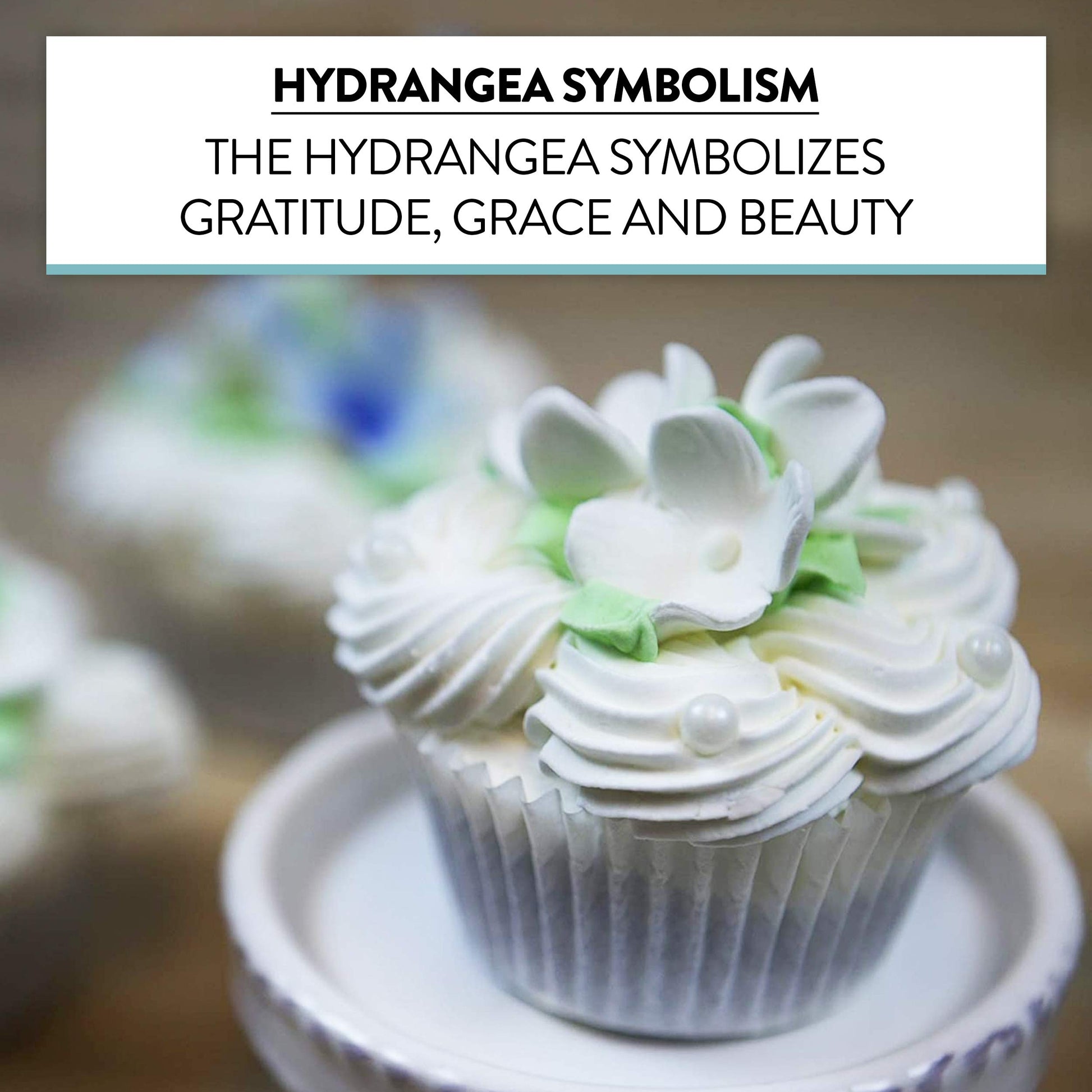 Q: What are the dimensions of each hydrangea blossom?A: Each hydrangea blossom measures approximately 1 inch in diameter, making them the perfect size for decorating cakes and cupcakes.