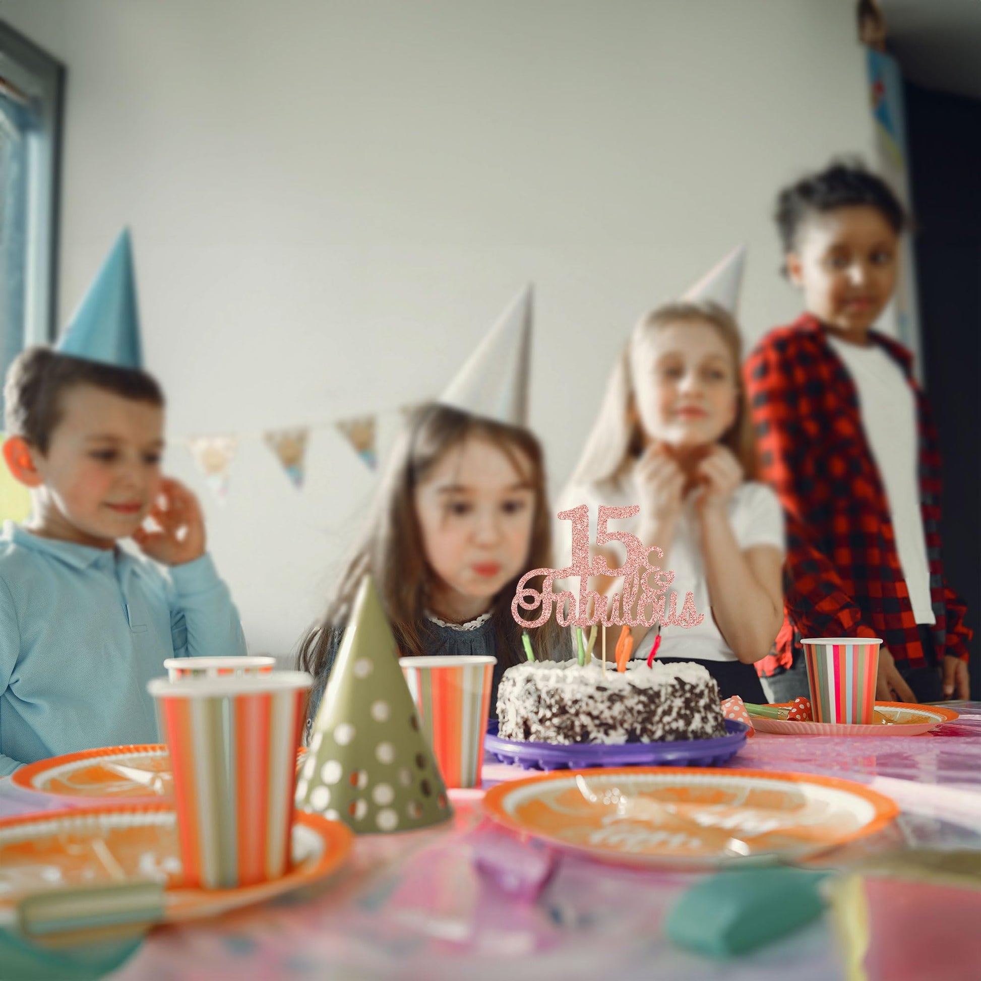Q: What is the size of the Gyufise 15 & Fabulous Cake Topper?A: The Gyufise 15 & Fabulous Cake Topper measures approximately W 5.7" x H 8.2" (or W 14.5 cm x H 20.8 cm including the stick), making it an ideal size for decorating cakes.