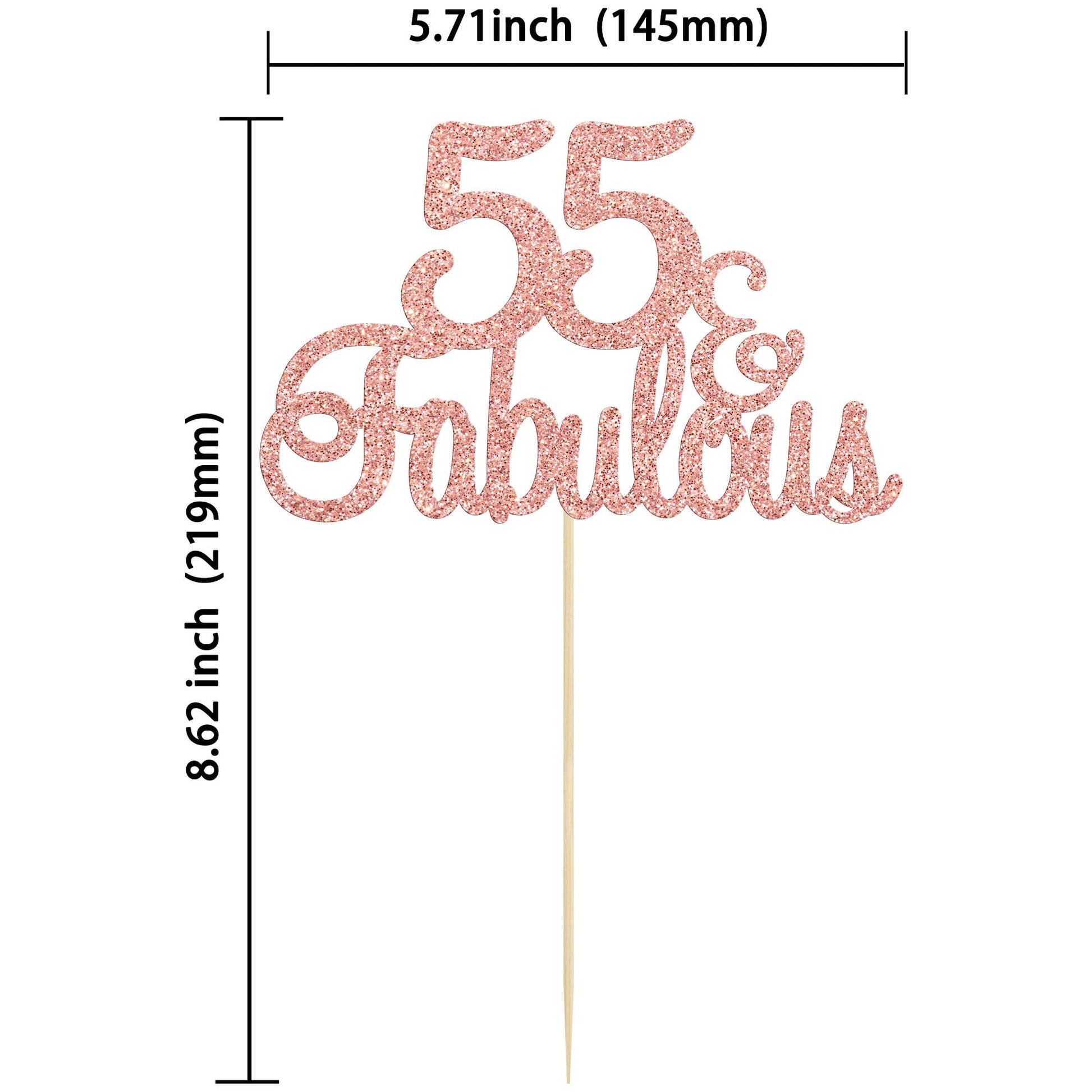 Q: What is the size of the Gyufise 55 & Fabulous Cake Topper?A: The Gyufise 55 & Fabulous Cake Topper measures 11.7x22cm (approximately 5.4x8.7 inches), including the stick, making it a perfect fit for various cake sizes.