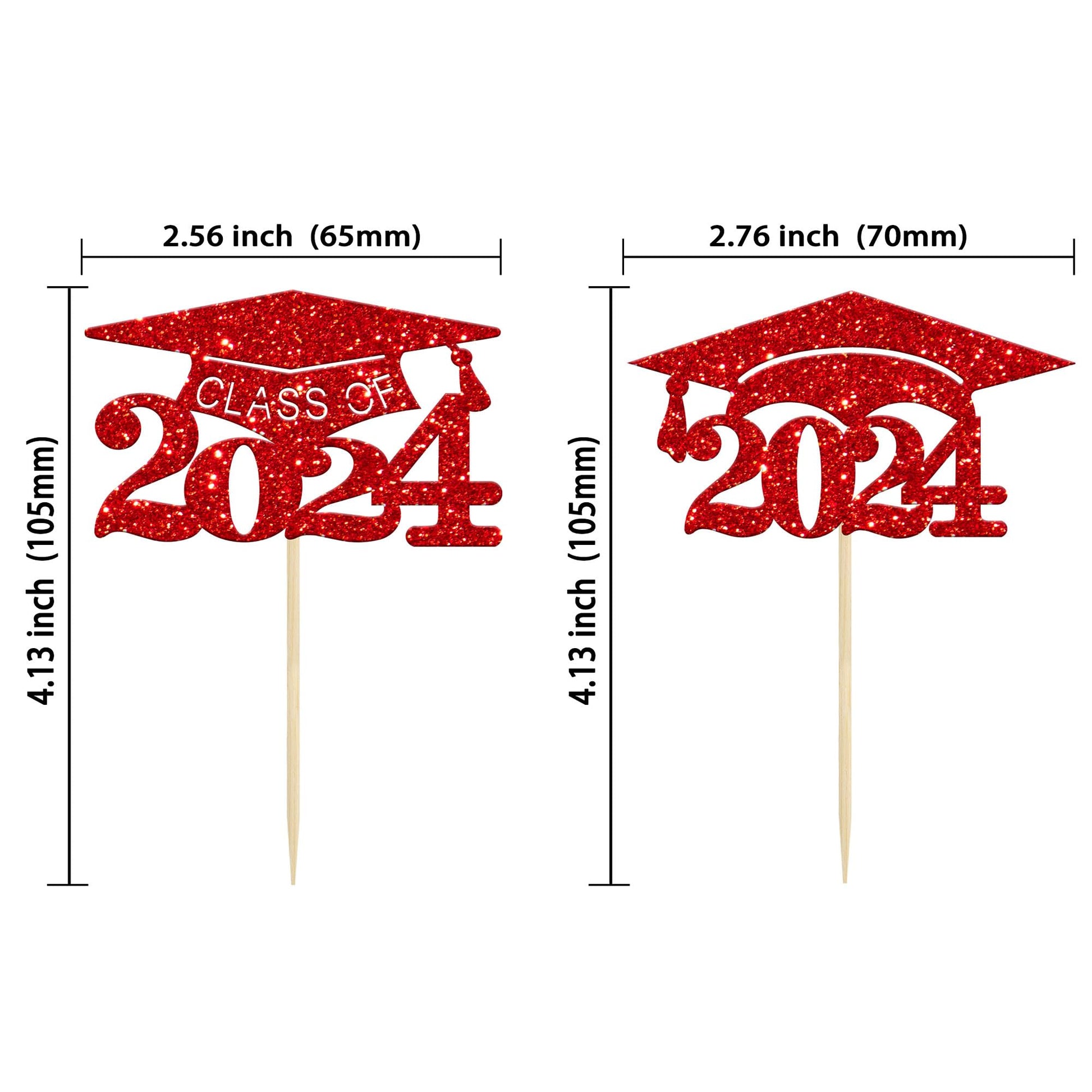 Q: What are the dimensions of the Gyufise 2025 Graduation Cap Cupcake Toppers?A: Each cupcake topper measures approximately 2.6 inches in width and 4.3 inches in height (including the stick), making them a perfect size for decorating cakes and cupcakes.