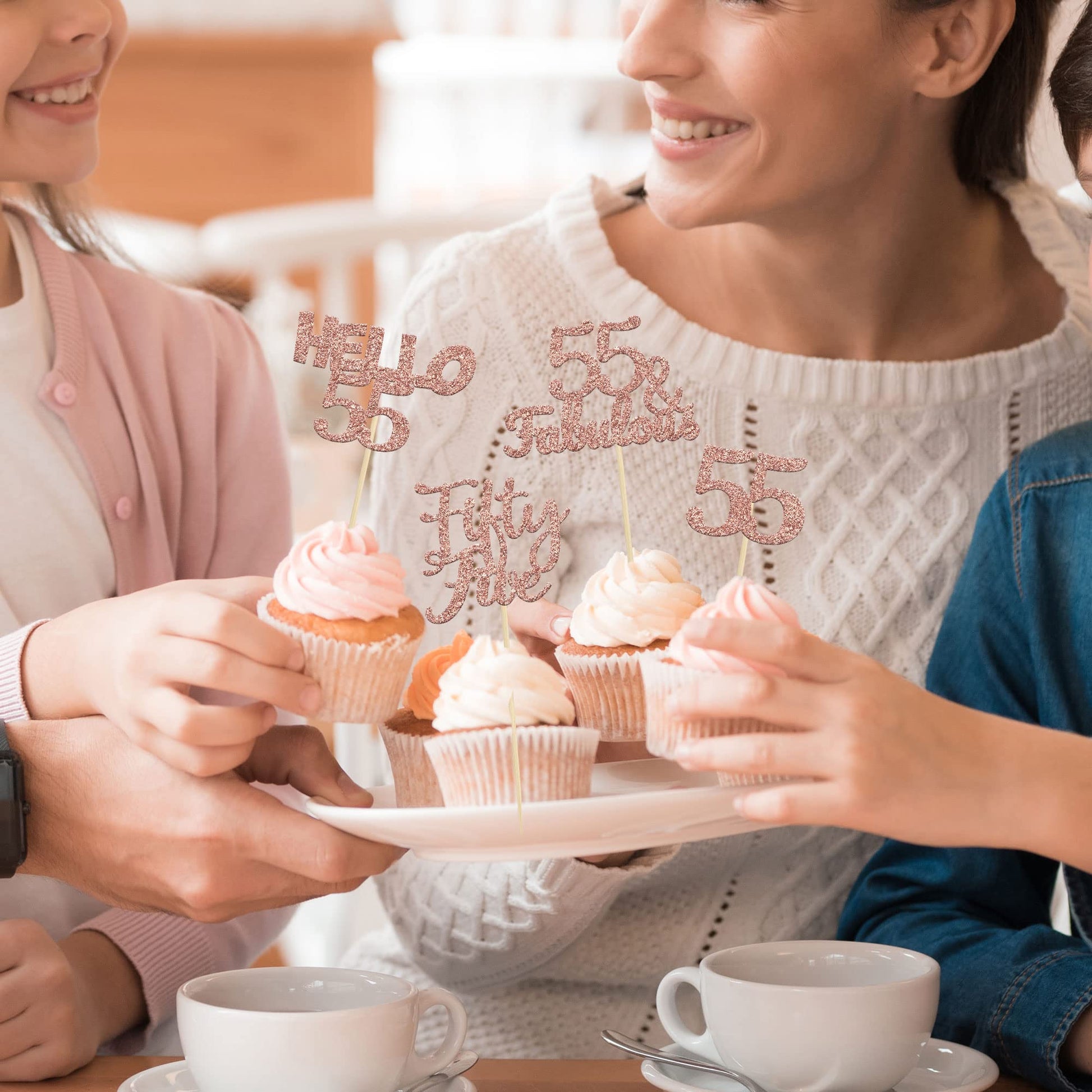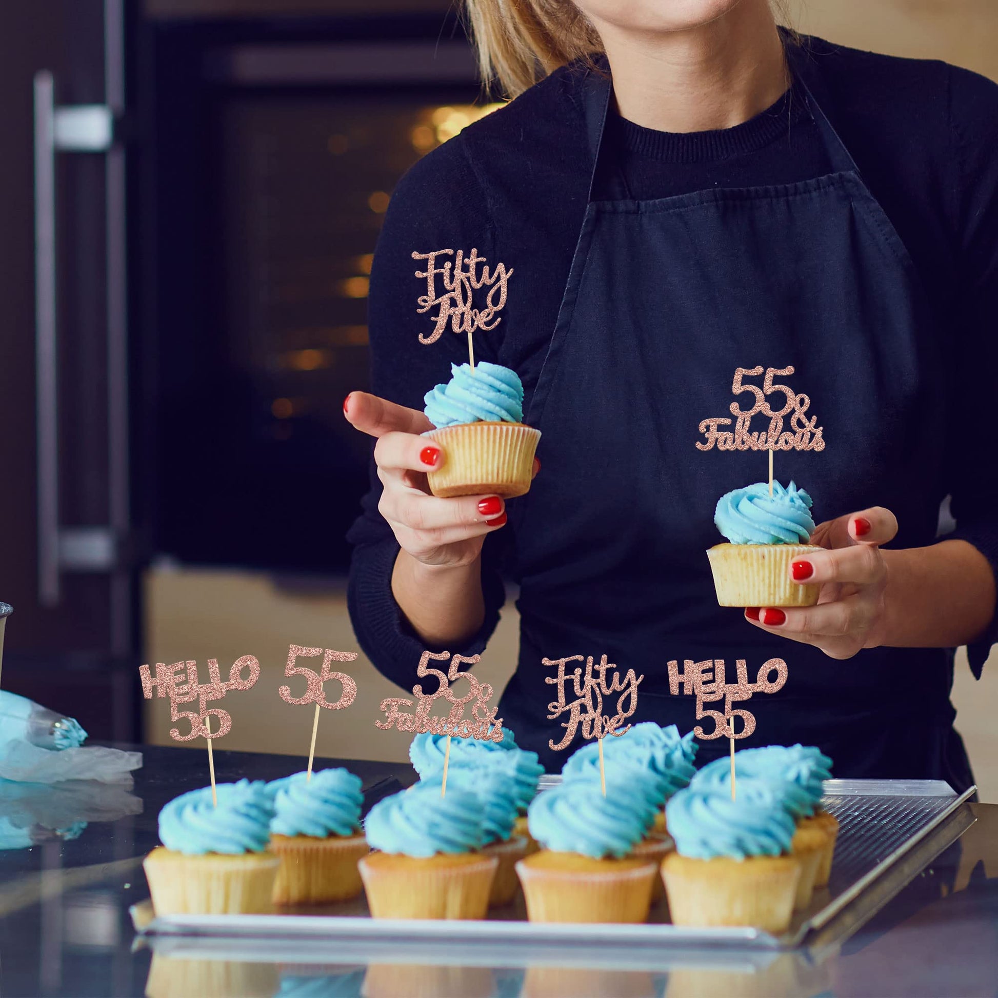 Q: What occasions are suitable for these cupcake toppers?A: These cupcake toppers are perfect for 55th birthday parties, anniversaries, and other celebrations that feature a 55th theme, adding a fun and attractive touch to your cake or desserts.