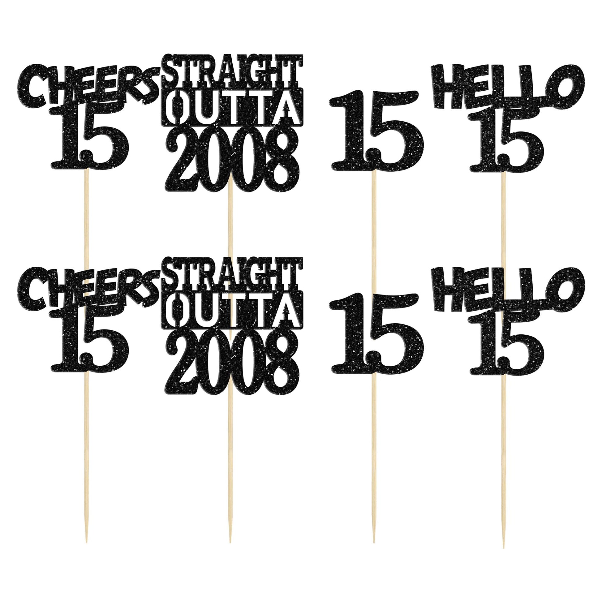 Q: What theme parties are suitable for these cupcake toppers?A: These cupcake toppers are perfect for 15th birthday celebrations, straight outta 2008 theme parties, and 15th wedding anniversary events, adding a fun and attractive touch to your decorations.