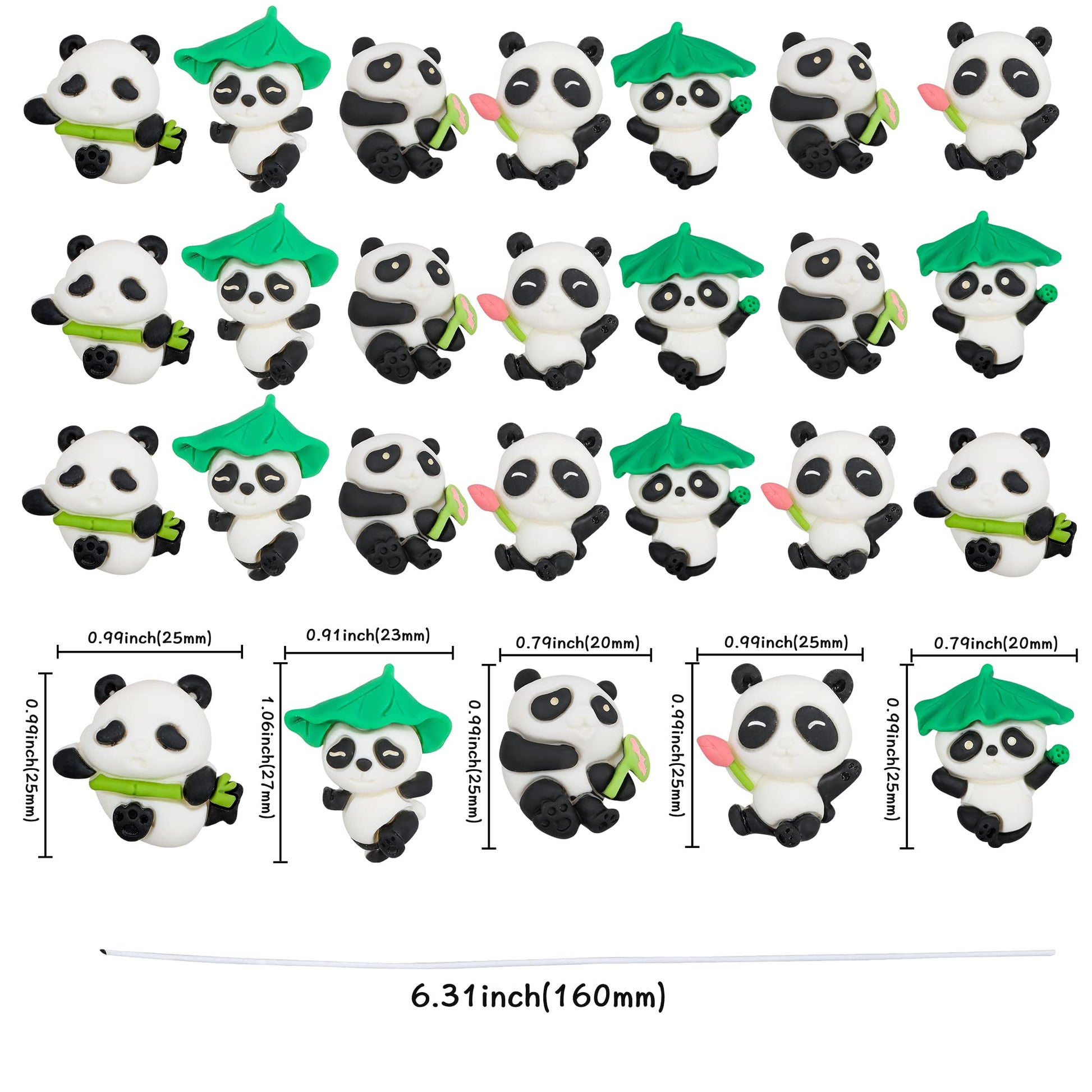 Q: What material are the Panda Cupcake Toppers made from?A: The Panda Cupcake Toppers are made from high-quality resin material, ensuring they are safe for use on various desserts such as cakes, cupcakes, and ice cream.