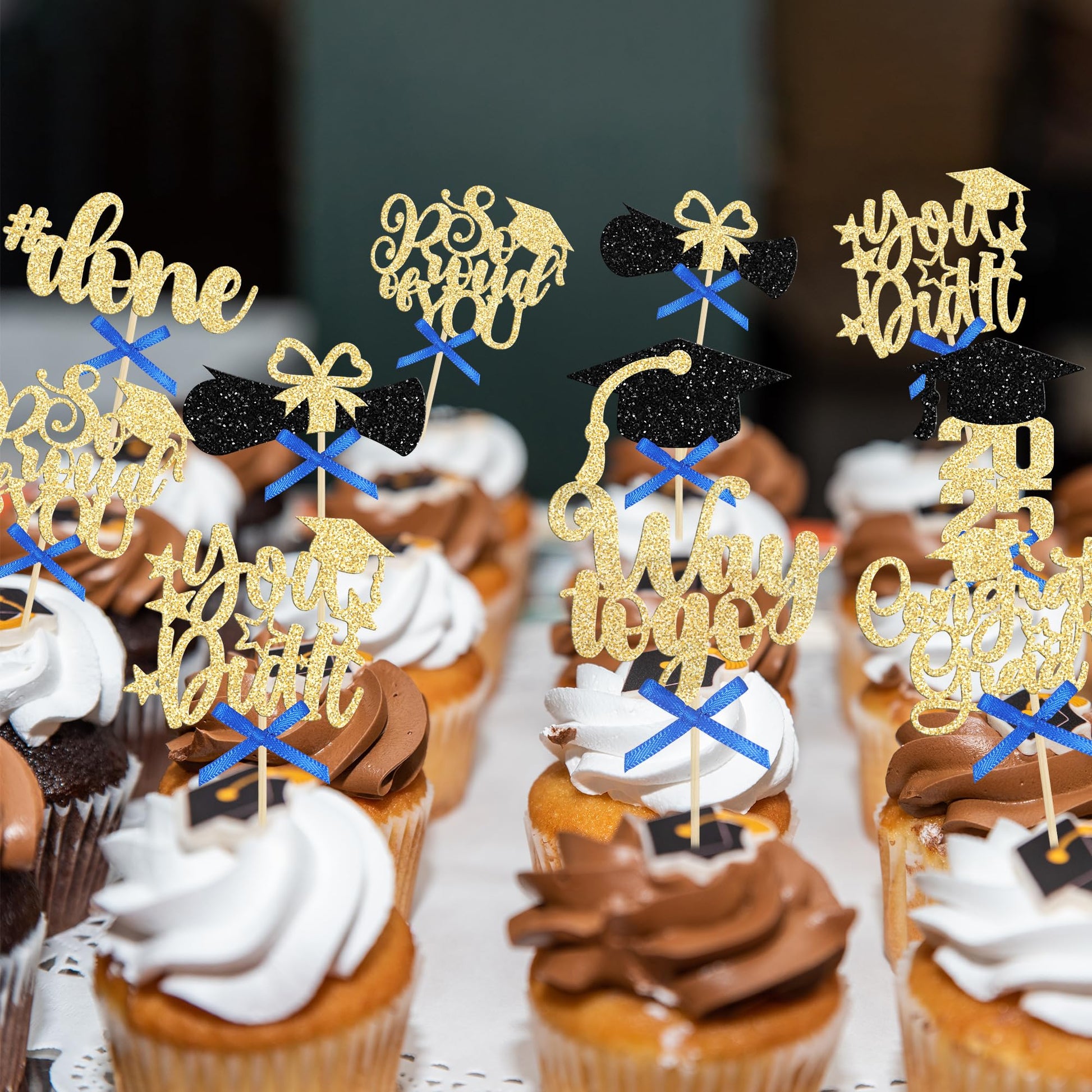 Q: What occasions are these graduation cupcake toppers suitable for?A: These cupcake toppers are ideal for a variety of graduation celebrations, including kindergarten, primary school, junior high, senior high school, college, and advanced degrees like Master's or Ph.D. ceremonies.