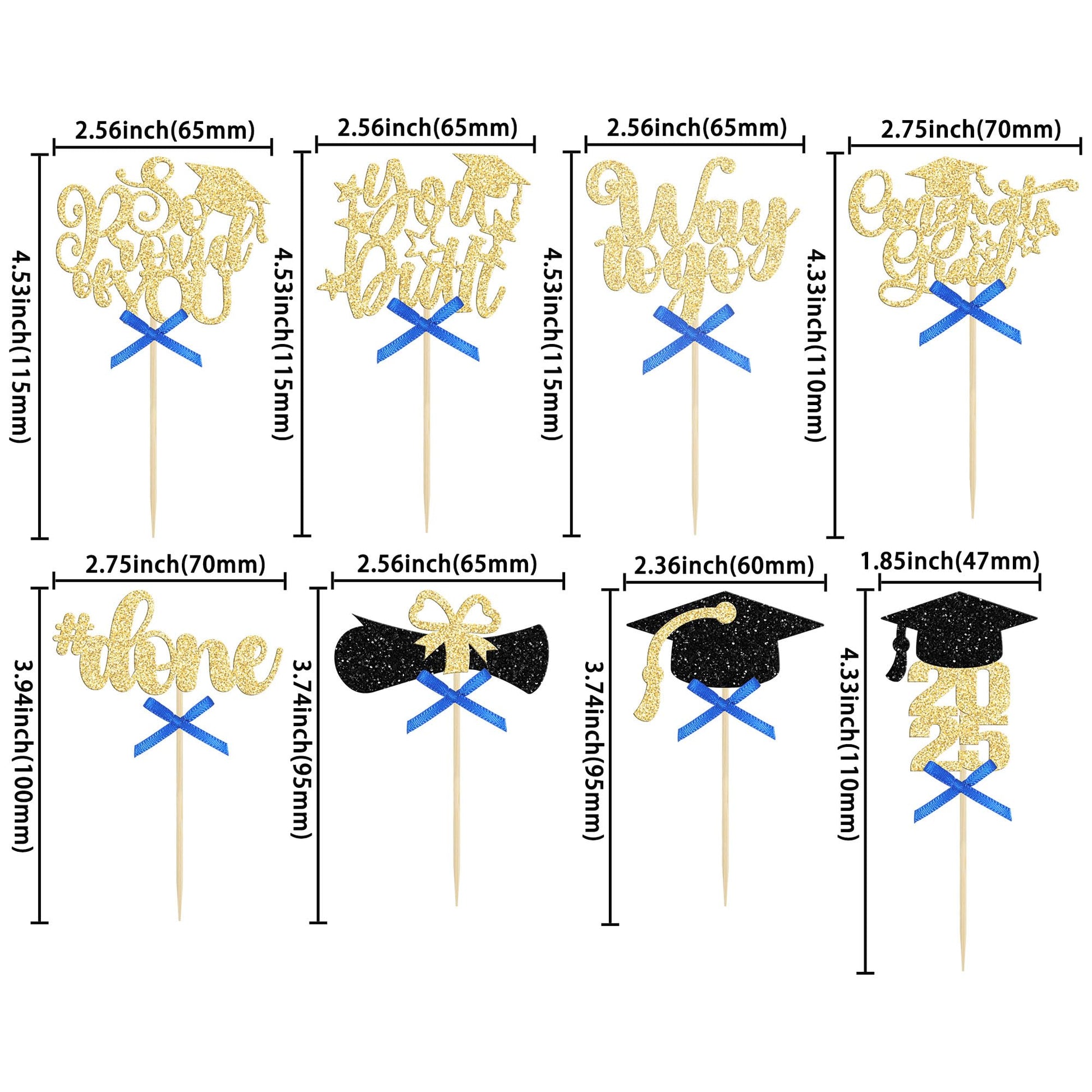 Q: What sizes are the Gyufise 2025 Graduation Cupcake Toppers?A: The Gyufise 2025 Graduation Cupcake Toppers have a size of W 2.6" x H 4.3" (W 6.5 x H 11 cm including the stick), making them perfect for adding a fun touch to your graduation-themed desserts.
