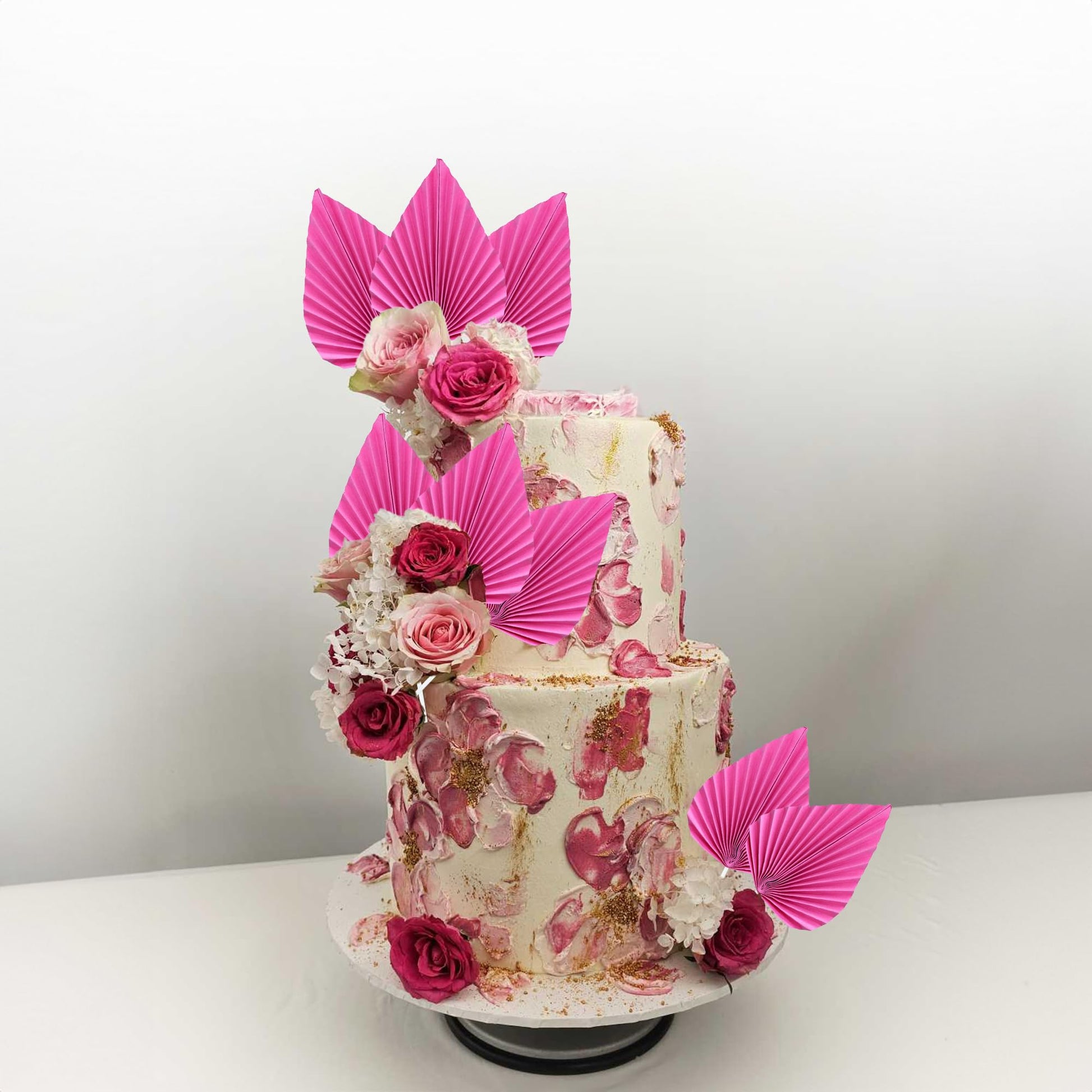 Q: Can I use these cake toppers for different types of parties?A: Absolutely! The Gyufise Paper Palm Fan Cake Toppers are versatile and perfect for various occasions, including weddings, bridal showers, birthday parties, and bachelorette theme celebrations.