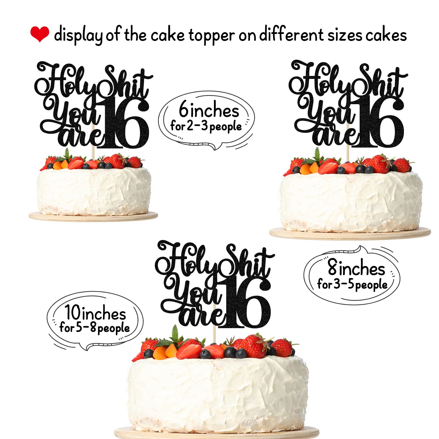 Q: How large is the cake topper?A: The Happy 16th Birthday Cake Topper measures approximately 8.6 inches in length and 5.5 inches in width, making it a perfect size for most birthday cakes.