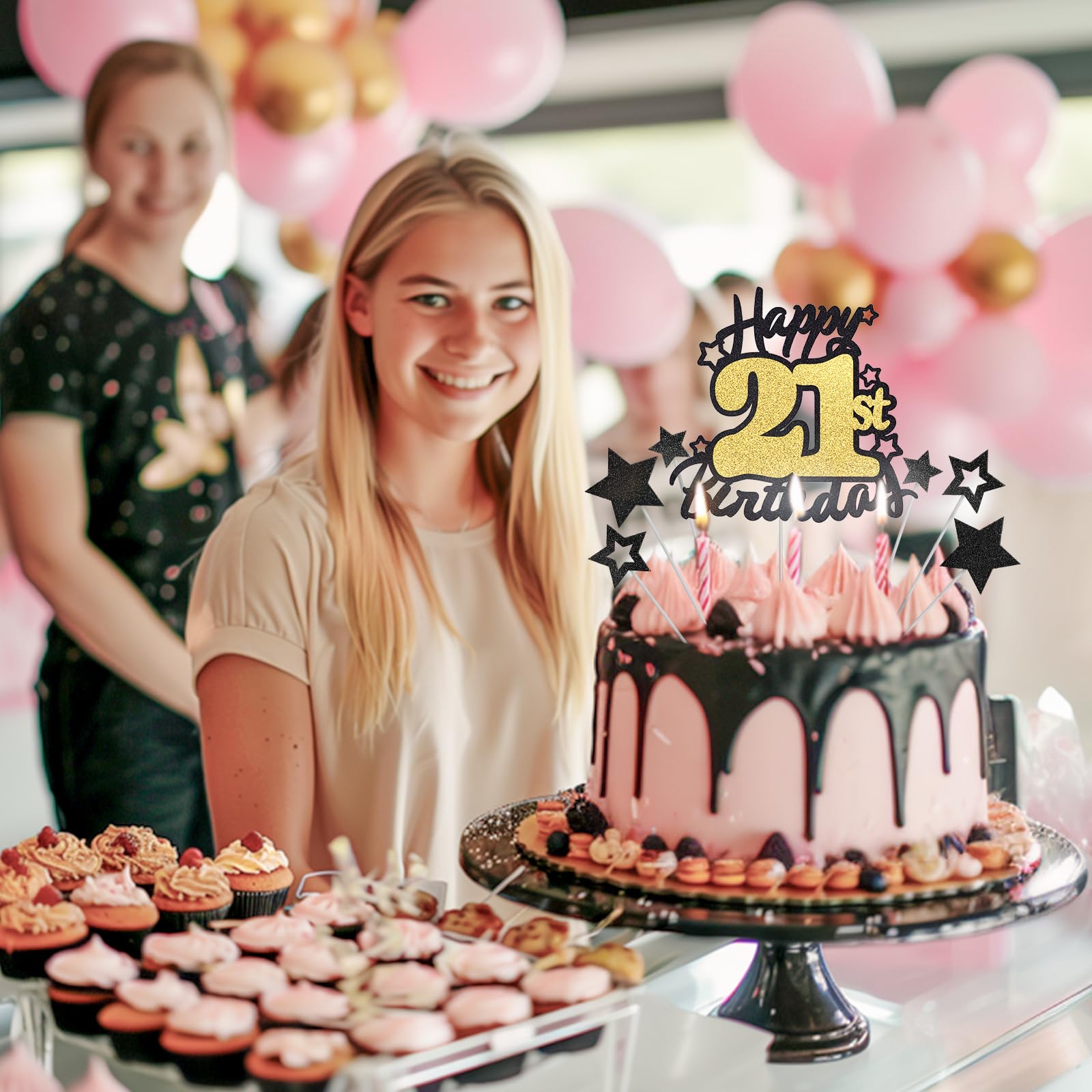 ;Celebrate Your Special Year With Our Black Gold Birthday Cake Topper. This Exquisite Piece Is More Than Just A Decoration; Its A Symbol Of Love, Joy, And Unforgettable Memories. Crafted With A Stunning Glitter Finish, This Topper Brings An Elegant Touch To Your Celebration, Making Your Cake The Highlight Of The Event. ;Ideal For Happy Birthday Theme Party, Anniversary Celebrating Theme Party Cake Decorations Supplies. Attention This Cake Topper Features Glitter On One Side And Is White On The Other. It'S Meant For Decoration Only, So Please Do Not Place It In The Oven Or Microwave. Specifications Material:&Nbsp; - Glitter Card Stock + Plastic Stick - Adhesive Dots Package Includes: - 1 Pc Happy 21St Birthday Cake Topper - 1 Pc Food-Grade Clear Plastic Stick - 6 Pcs Glitter Stars - 6 Pcs White Plastic Sticks - 10 Pcs Adhesive Dots