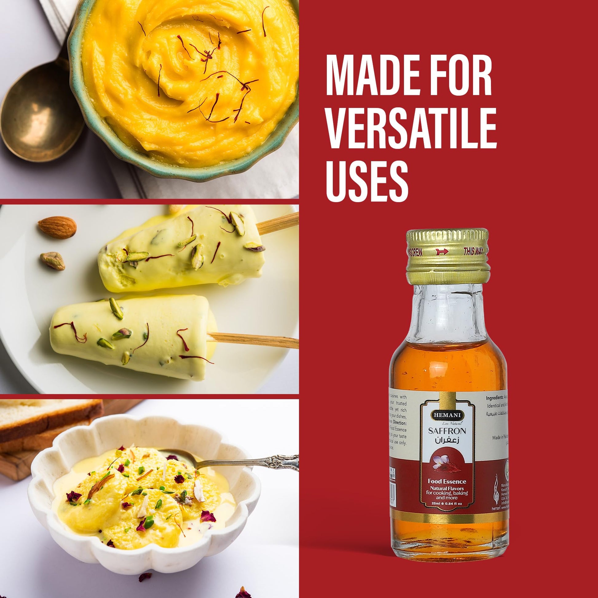 - Q: What types of dishes can I make using Hemani Saffron Food Essence? A: Hemani Saffron Food Essence is perfect for a variety of dishes, including traditional Indian saffron rice, biryani, paella, and Mediterranean recipes. Its rich flavor enhances any meal, making it a great addition to your culinary repertoire.