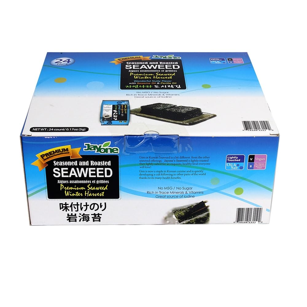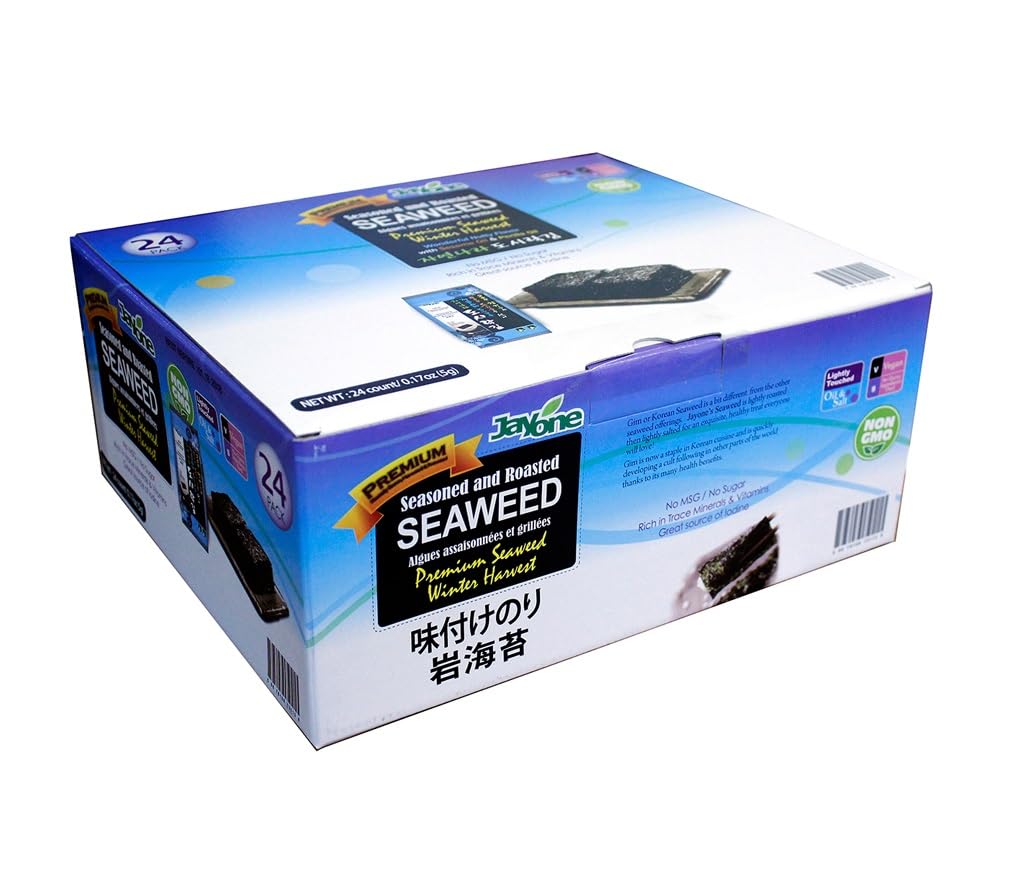 Q: Is Jayone Seaweed suitable for special diets?A: Yes, Jayone Seaweed is Non-GMO, Gluten-Free, and Vegan, making it an excellent choice for various dietary preferences.