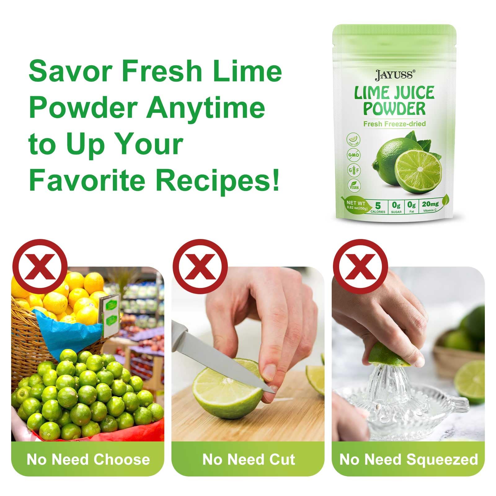 Jayuss Lime Juice Powder 8.82 Ounce (250G), 100% Natural, No Sugar Or Additives, Perfect For Drinks, Smoothies, And Beverages Lime Juice Powder Is Made From Fresh Limes And Freeze-Dried To Lock In Natural Flavor And Nutrients. No Additives-Just Pure, Concentrated Lime Goodness In Every Scoop.