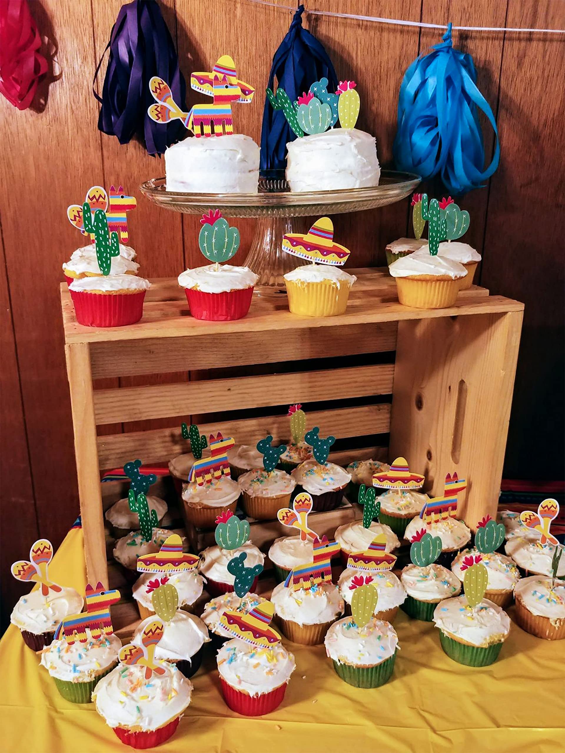 Q: Can these cupcake toppers be used for other desserts?A: Yes, these fiesta-themed cupcake toppers can be used to decorate not just cupcakes, but also cakes, fruits, ice cream, and more, making them versatile for any festive dessert.