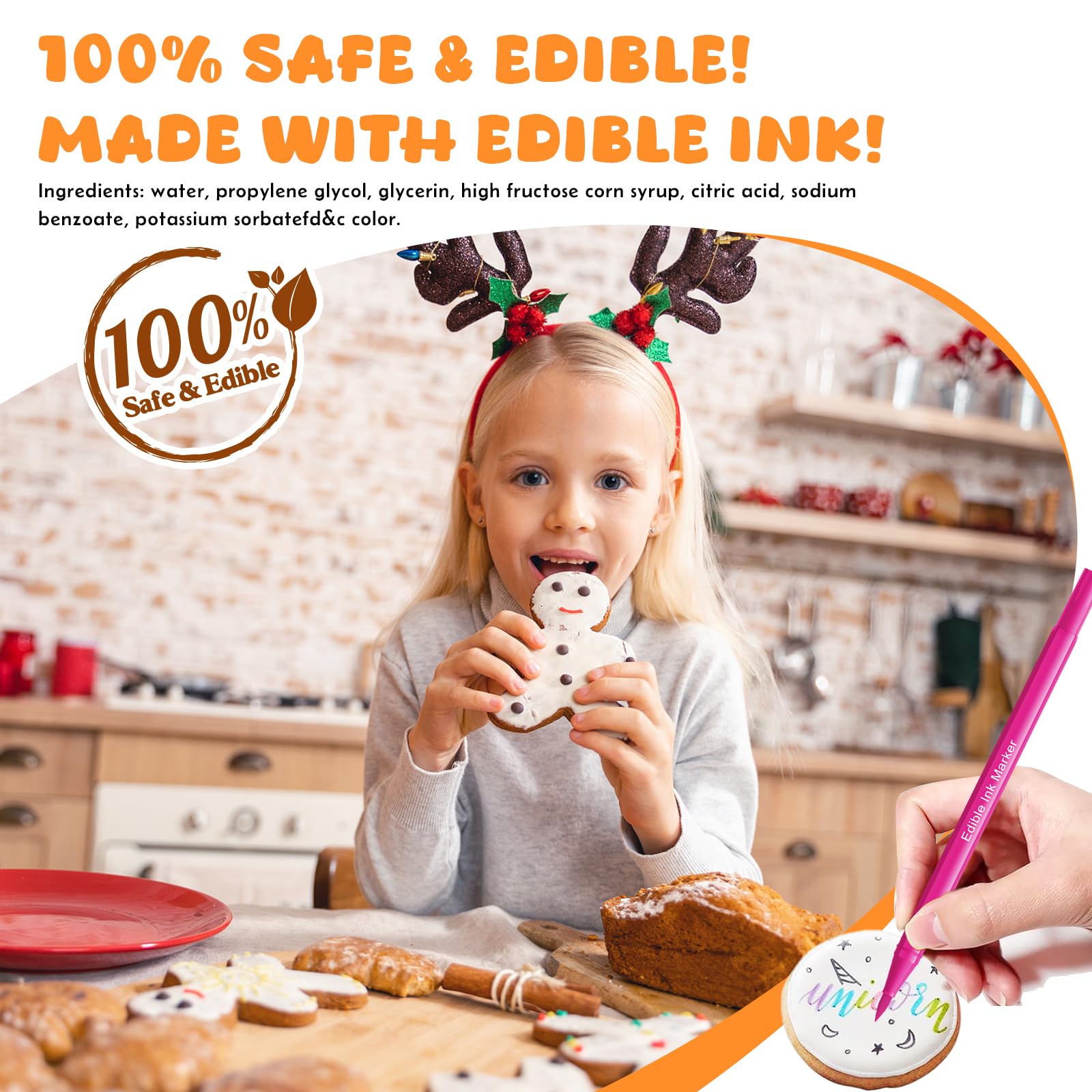 Q: Are the Jewem Edible Markers safe for children to use?A: Yes, the Jewem Edible Markers are made with food-grade edible ink that is non-toxic, odorless, and tasteless, making them safe for children to use while decorating cookies and other treats.