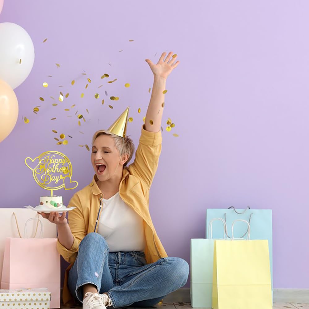 Q: How do I use the cake topper for my Mother's Day celebration?A: To use the cake topper, simply tear off the protective film on both sides to reveal the mirror finish. Then, place the topper on your cake to enhance your Mother's Day celebration effortlessly.