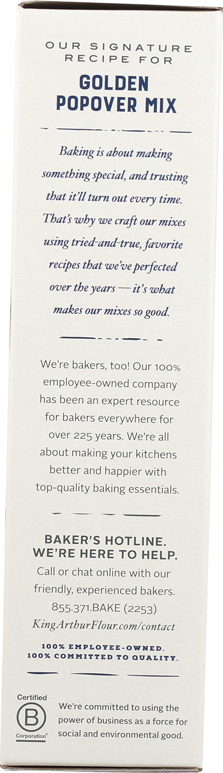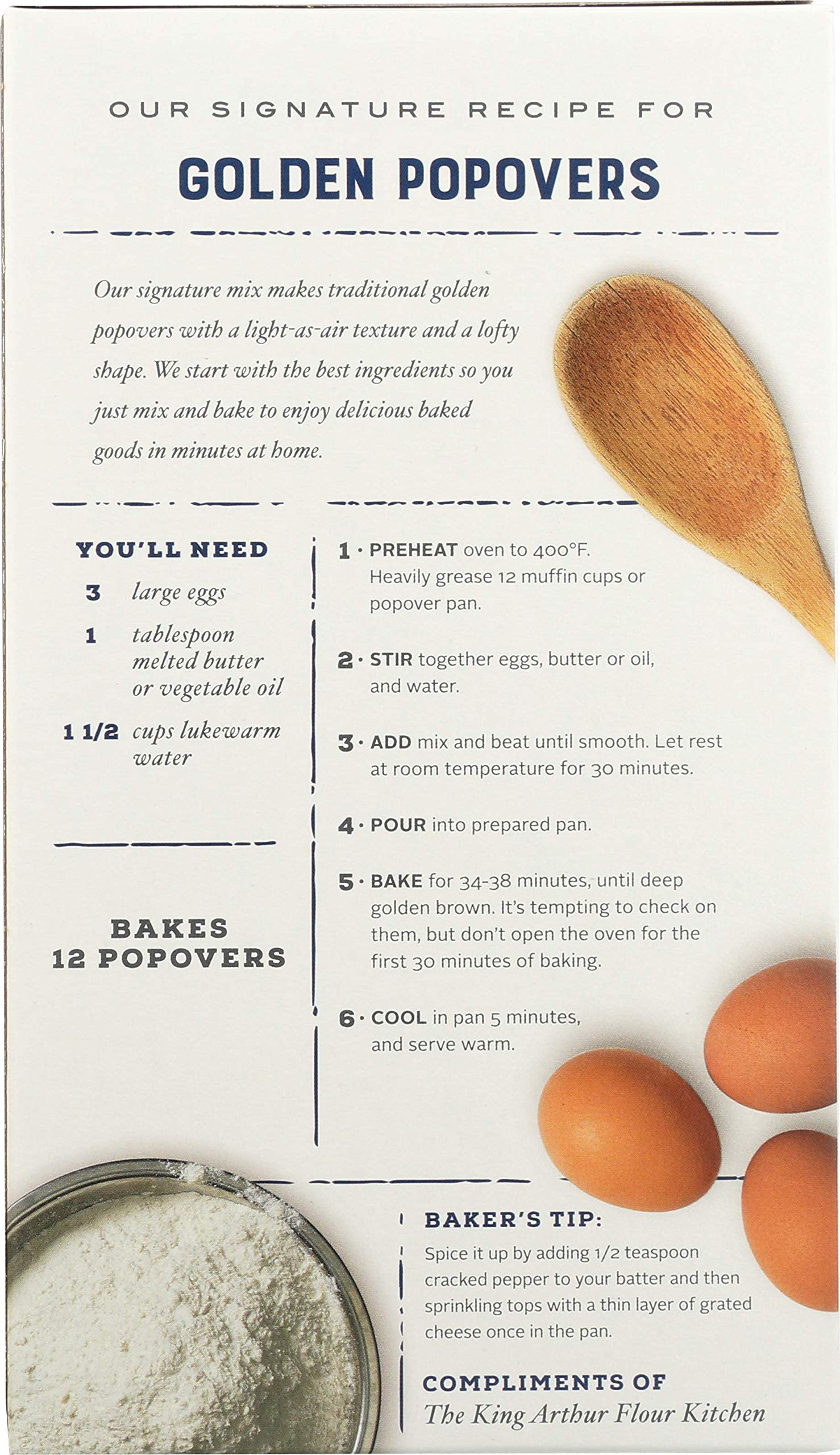 - Q: What are the key ingredients in King Arthur Popover Mix? A: King Arthur Popover Mix is made with natural ingredients to ensure the best taste and quality. The mix typically includes flour, leavening agents, and salt, providing a perfect base for light and airy popovers.