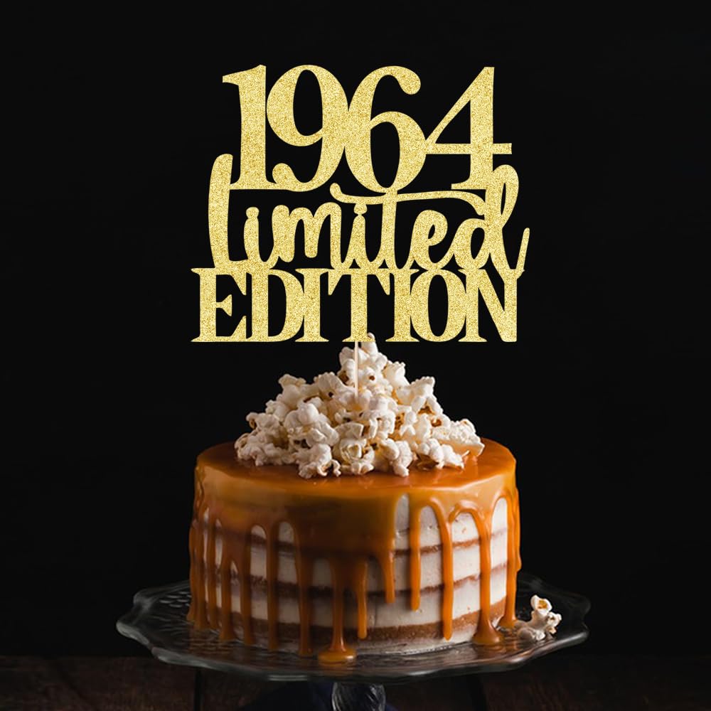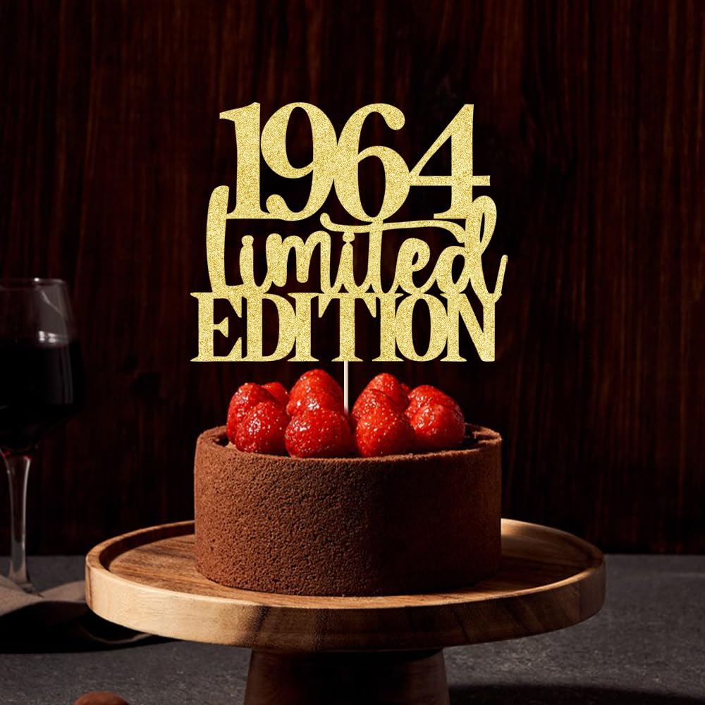 Q: What material is the 1964 cake topper made from?A: The Limited EDITION 1964 cake topper is made from high-quality paper and features a food-grade toothpick, ensuring it is safe for use on cakes, cupcakes, and other desserts.