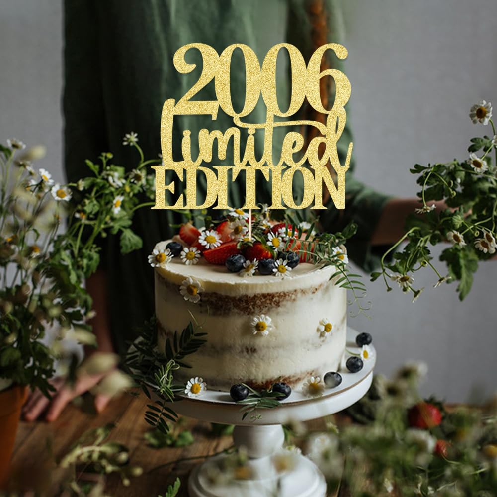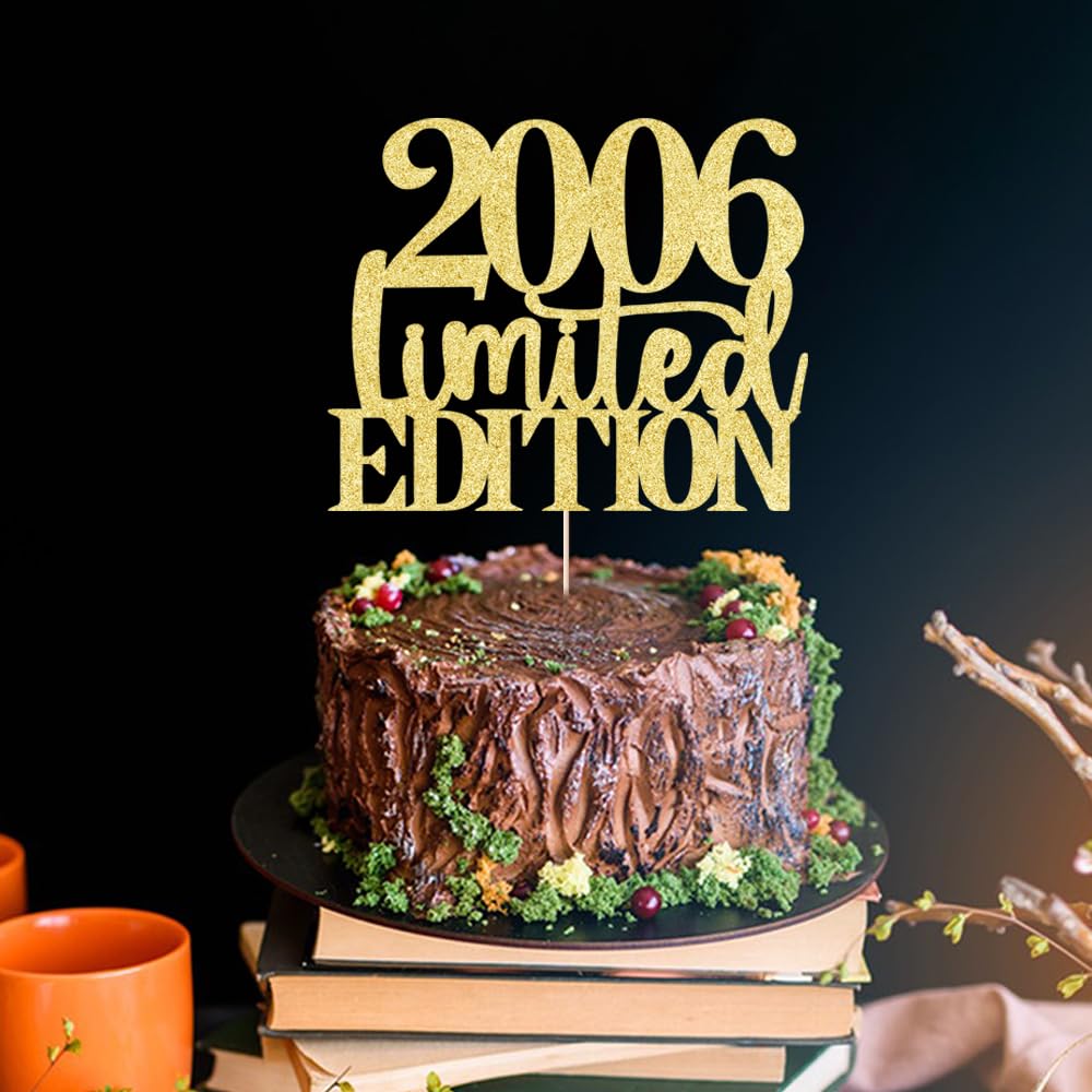 Q: What material is the 2006 cake topper made from?A: The 2006 cake topper is made from high-quality paper and food-grade toothpick, ensuring it is safe to use on cakes, cupcakes, and other desserts.