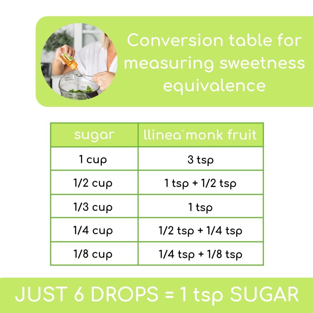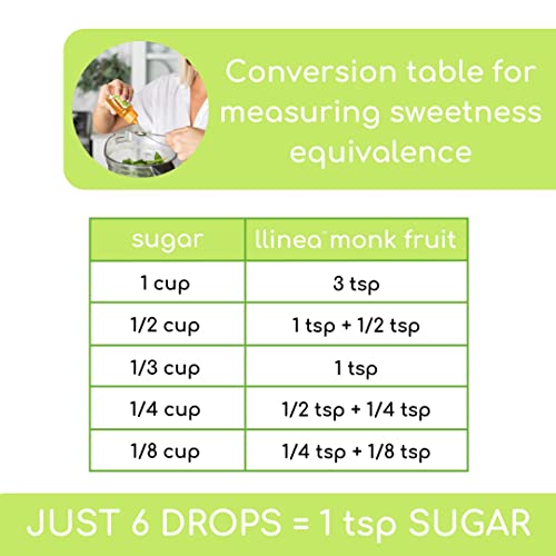 Q: What is llinea Monk Fruit and how is it used?A: llinea Monk Fruit is a natural sweetener derived from the juice extract of the monk fruit. It can be used to sweeten various beverages such as coffee, tea, and smoothies. For optimal sweetness, we recommend adding 6-12 drops for 8 ounces of coffee and 4-6 drops for 8 ounces of tea.