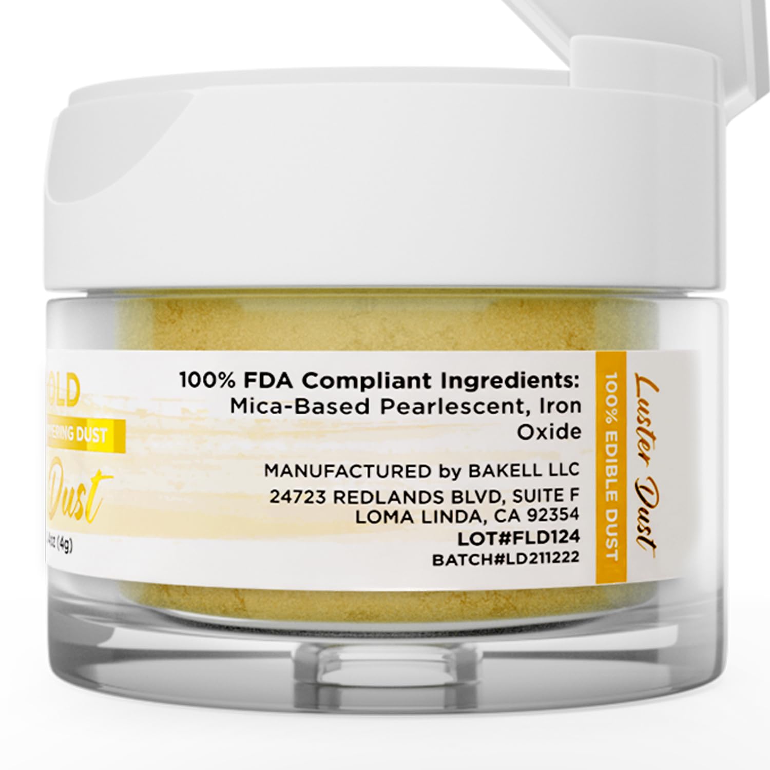 - Q: Is Bakell's Luster Dust safe for consumption and what are its ingredients? A: Absolutely! Bakell's Luster Dust is made from high-quality, food-safe ingredients. It is nut-free, gluten-free, and vegan, ensuring it's safe for a wide range of dietary needs. The product is manufactured in certified facilities, prioritizing your health and safety.