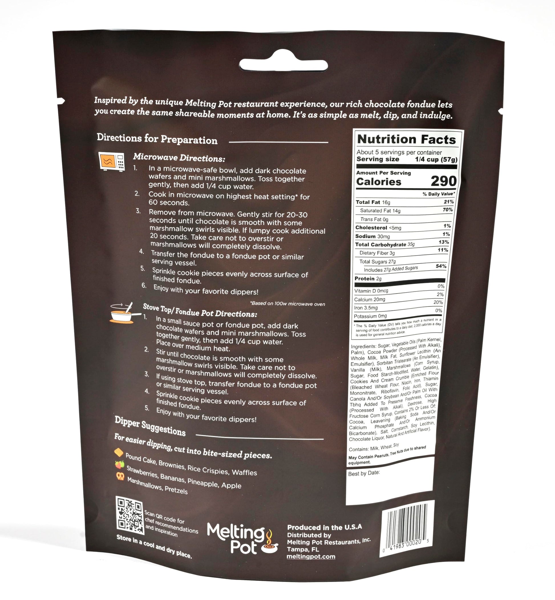 Q: What is the best way to melt the chocolate wafers?A: The Melting Pot chocolate wafers can be easily melted using a stove top or microwave. Simply heat the wafers until they reach a smooth and creamy consistency. No fondue pot is needed, making it convenient for home use.