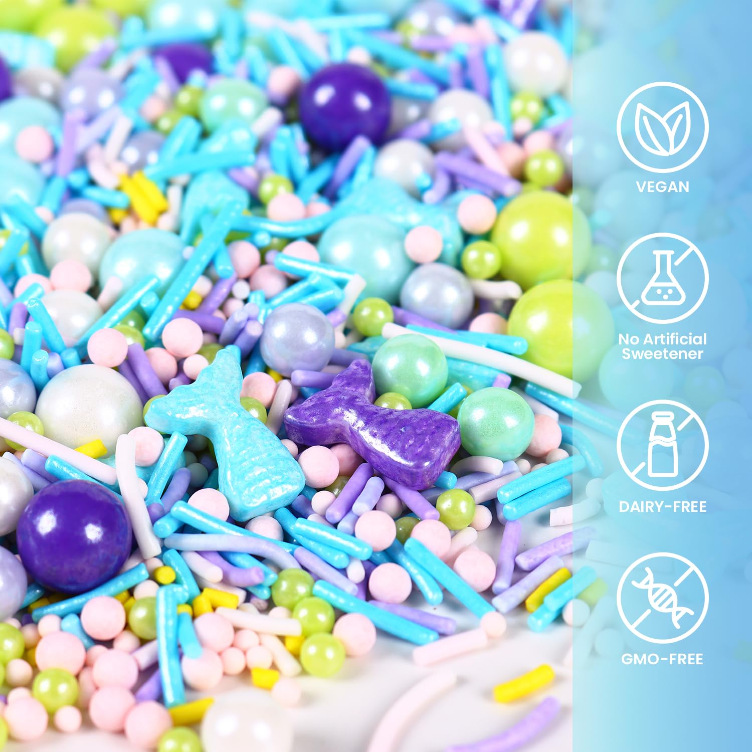 [ Mermaid Sprinkles ] Our Edible Sprinkles Are Non Toxic And 100% Edible. Use Edible Ocean Sprinkles To Decorate Cakes, Cupcake Or Cookies After Baking To Avoid Melting. Use Raw Materials That Meet Food Safety Standards. The Large Sugar Sprinkles Will Be Hard, Please Do Not Bite When Consuming It. Please Put It In Your Mouth To Melt First. Avoid Giving It To Children | [ Sprinkles For Cake Decorating ] Take An Appropriate Amount Of Blue Sprinkles To Decorate The Cake, Cupcakes, Cookies, Chocolate, Ice Cream, Donuts And Desserts, Etc. Make The Food More Holiday Wedding Party Birthday Valentines Festive. It Is Recommended To Decorate The Food After Baking, Sprinkles At High Temperatures Will Melt To Varying Degrees | [ Widely To Use ] Holiday-Themed Sprinkles Are Suitable For All Ages And Are A Must For Cake Baking And Decorating. Ideal For Birthdays, Christmas, Valentines Day, Weddings, Halloween, Mother'S Day, Anniversaries, Celebrations, Holiday. The Delicious Sugar Sprinkles Can Make The Food More Happy Festive | [ Shelf Life ] Ths Shelf Life Of Sprinkles Is 24 Months, Production Date Please See The Package. The Sprinkles Is Cost Effective And The Sealed Lid Can Meet The Needs Of Multiple Food Baking Decorations. Only A Small Spoonful Is Needed For Each Use | [ Customer Service ] If You Are Not Satisfied With Our Products Or Service, Please Feel Free To Contact Us By Email In Time. We Always Do Our Best To Settle Your Problems And Inquiries