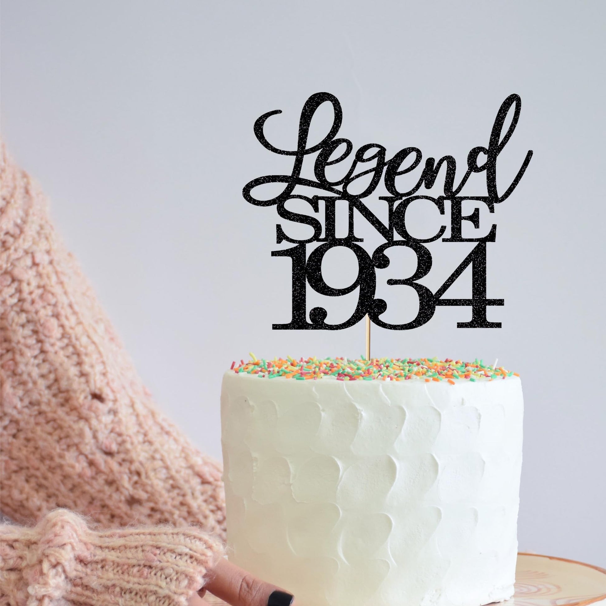 Migeaks legend since 1934 cake topper 90th birthday happy birthday cake topper men and women cheer 90 years old handmade black glitter cake decoration