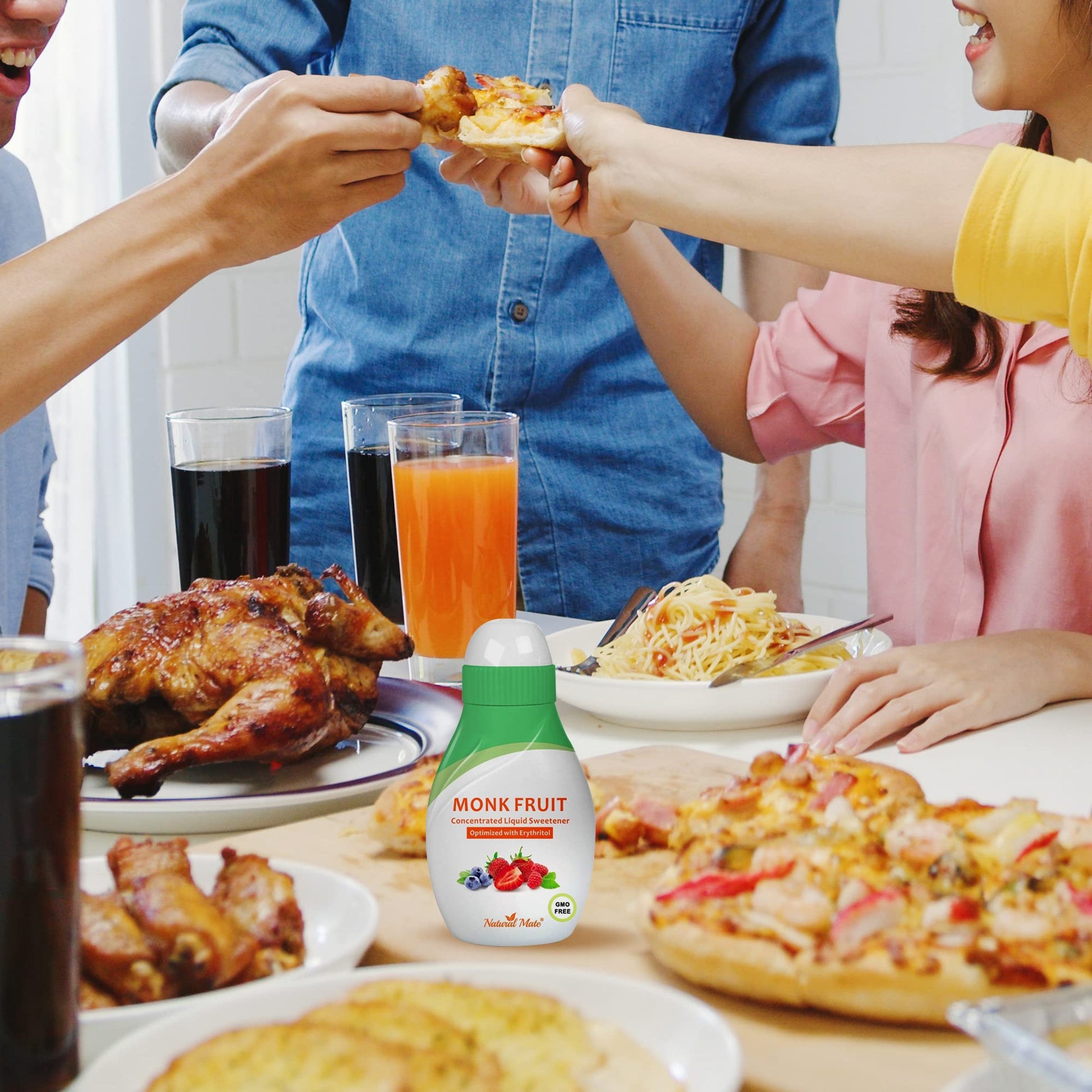 Q: Can I use Monk Fruit Liquid Sweetener for baking?A: Yes, Monk Fruit Concentrated Liquid Sweetener is perfect for various applications including drinks, cooking, and baking. It is a versatile sweetener that works well in different recipes, making it a great choice for any diet.