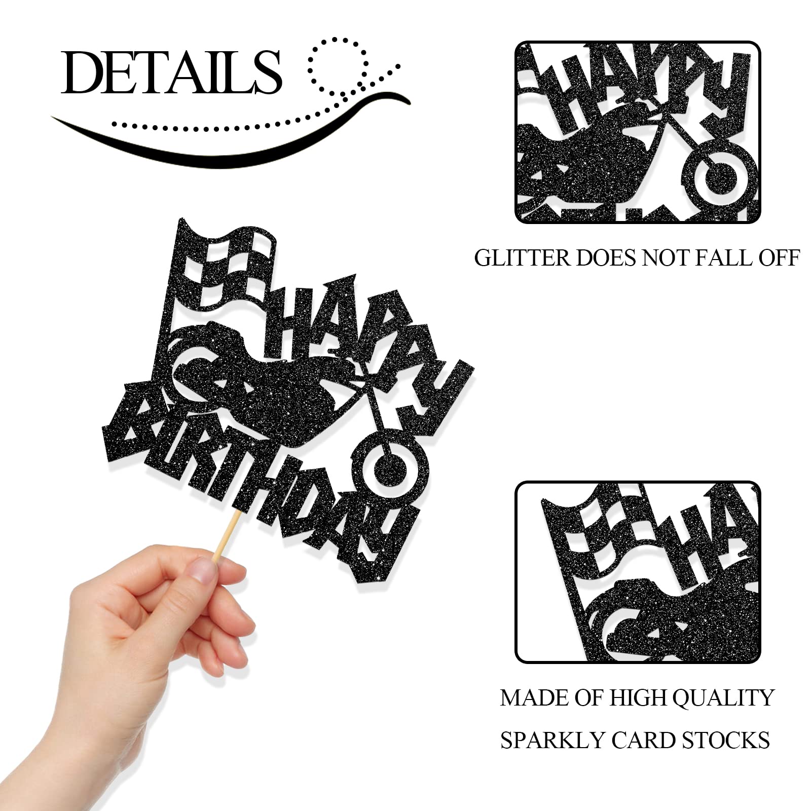 Q: What material is the MonMon & Craft Motorcycle Happy Birthday Cake Topper made of?A: The cake topper is made from food-grade, high-quality paperboard, ensuring safety and durability for your celebration.