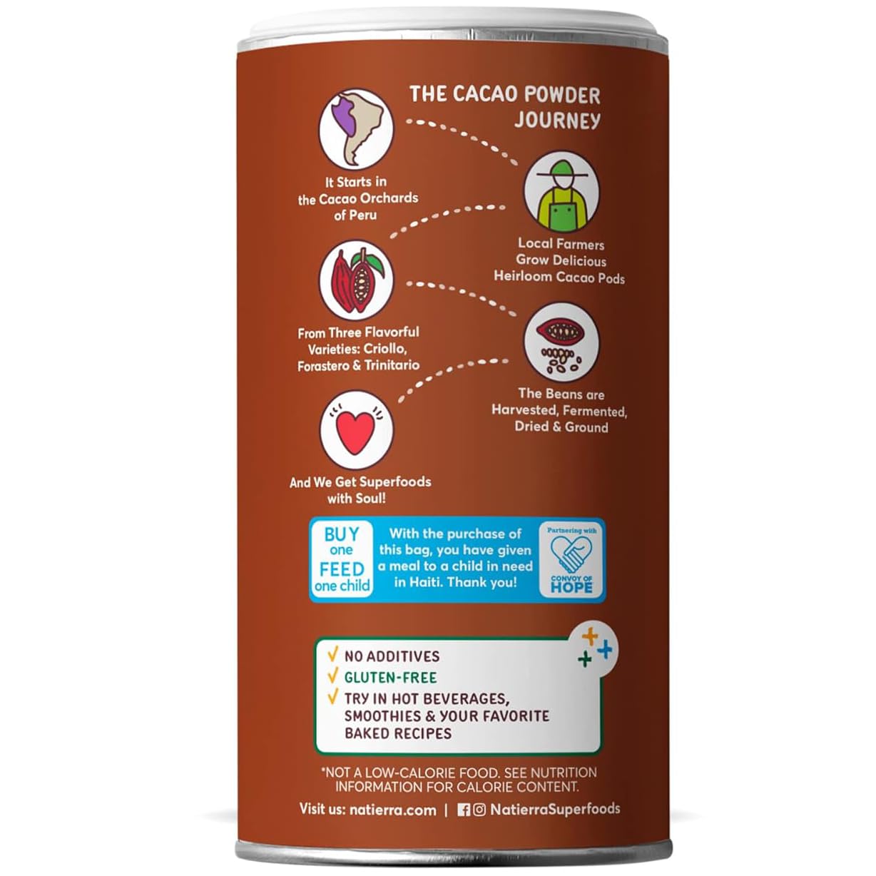 Q: How should I store NATIERRA Cacao Powder for optimal freshness?A: To maintain the freshness of NATIERRA Cacao Powder, store it in a cool, dry place, and ensure the container is tightly sealed after use.