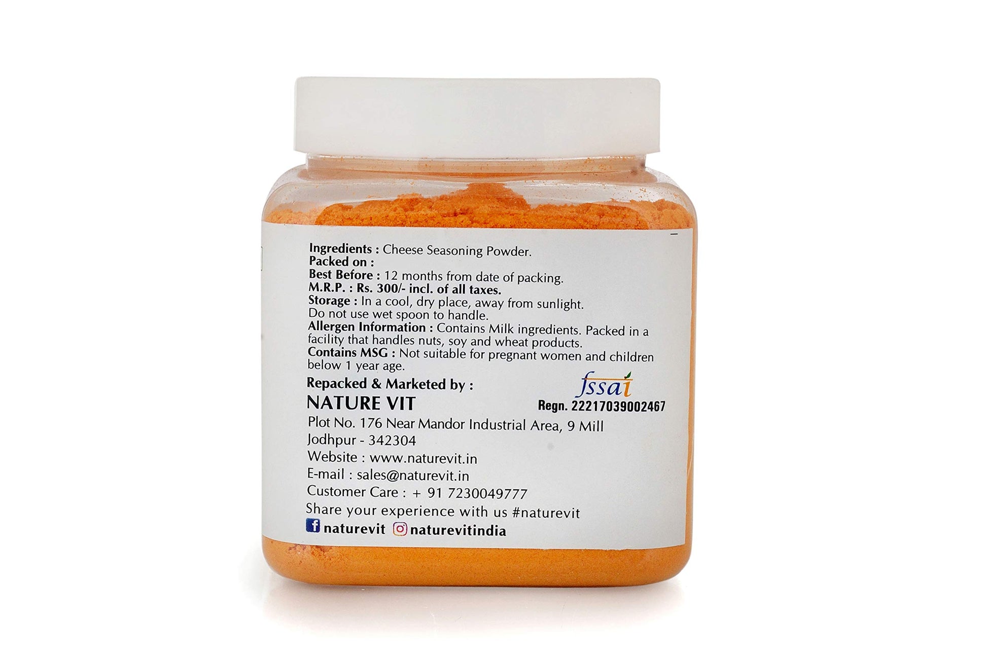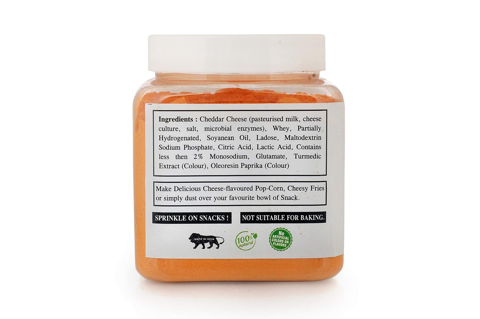 Q: What is the size of the NatureVit Cheddar Cheese Powder packaging?A: NatureVit Cheddar Cheese Powder comes in a convenient pack of two jars, each containing 250g, for a total of 500g. This size is perfect for regular use or sharing with family and friends.