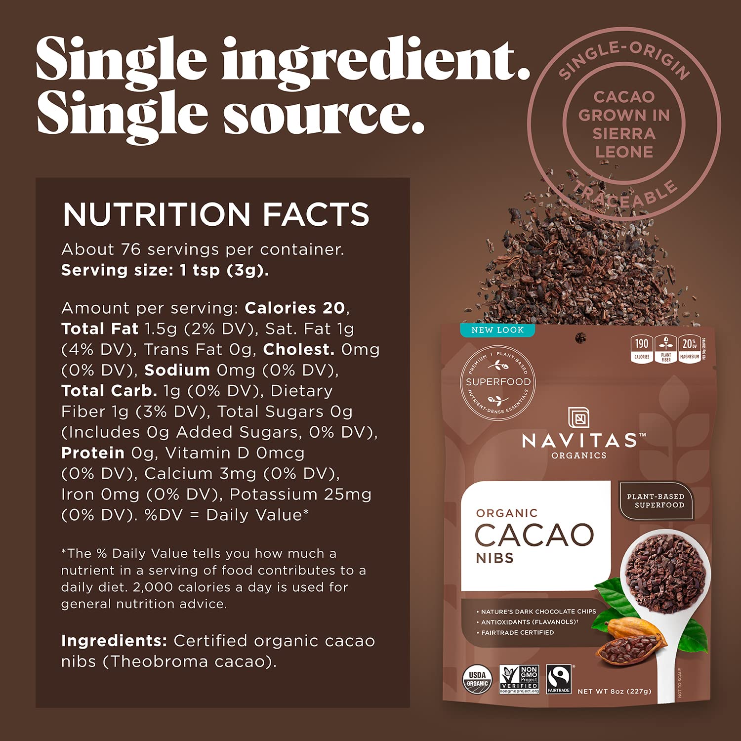 Q: What are the health benefits of Navitas Organics Cacao Nibs?A: Navitas Organics Cacao Nibs are packed with essential nutrients, including fiber, antioxidants, magnesium, and healthy fats. They are considered one of the most nutrient-dense foods, making them an excellent addition to a balanced diet.