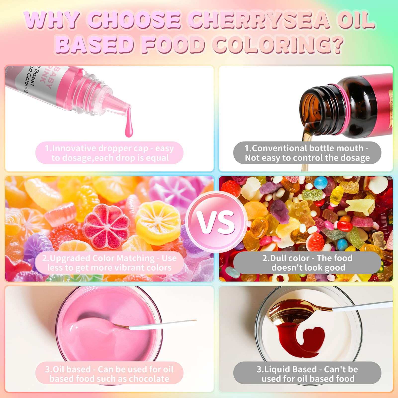 - Q: What are the benefits of using oil-based food coloring for baking? A: Oil-based food coloring is specially designed for chocolate and other fat-based products, providing vibrant colors that remain vivid even after baking or freezing. Unlike water-soluble dyes, these colors blend seamlessly into chocolate, butter, and mousse, ensuring a consistent and appealing finish.
