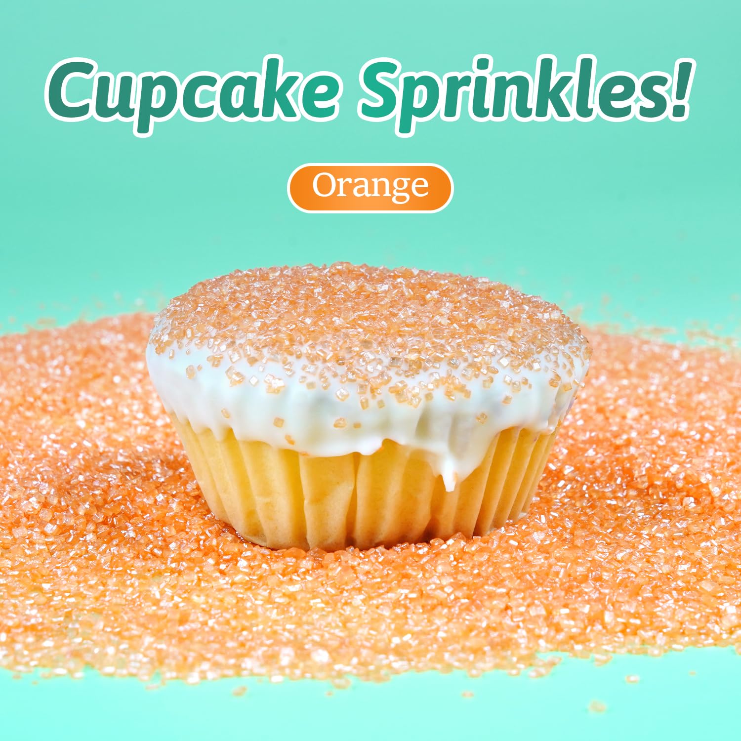 Q: How do I use Orange Sanding Sugar Sprinkles for decorating?A: To use Orange Sanding Sugar Sprinkles, simply sprinkle them on top of your baked goods, such as cakes, cookies, or cupcakes, after baking. One bottle typically decorates 3-5 cupcakes or one 3-inch diameter cake.