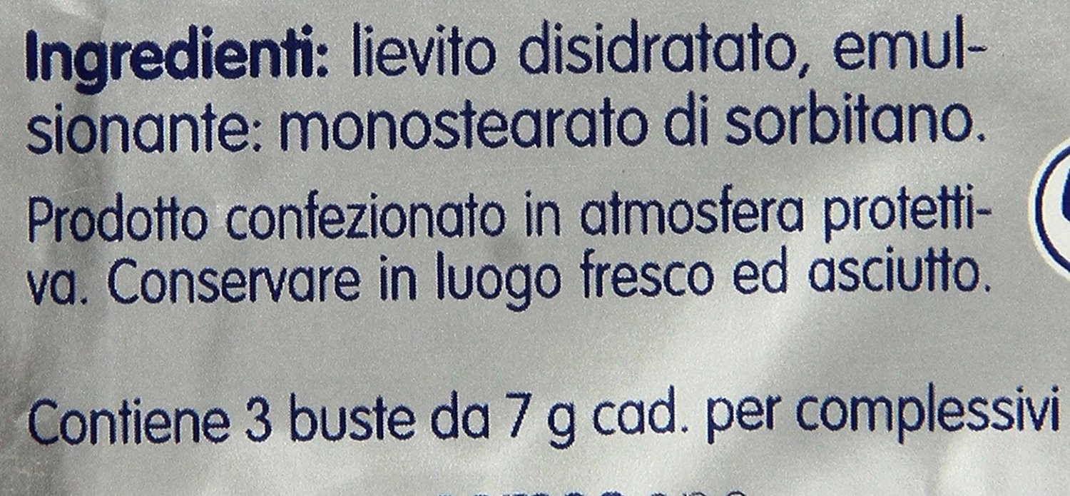Q: How many packets are included in each pack of Paneangeli Yeast?A: Each pack contains 3 envelopes, totaling 9 packets of yeast. This allows for multiple baking sessions or larger batches.