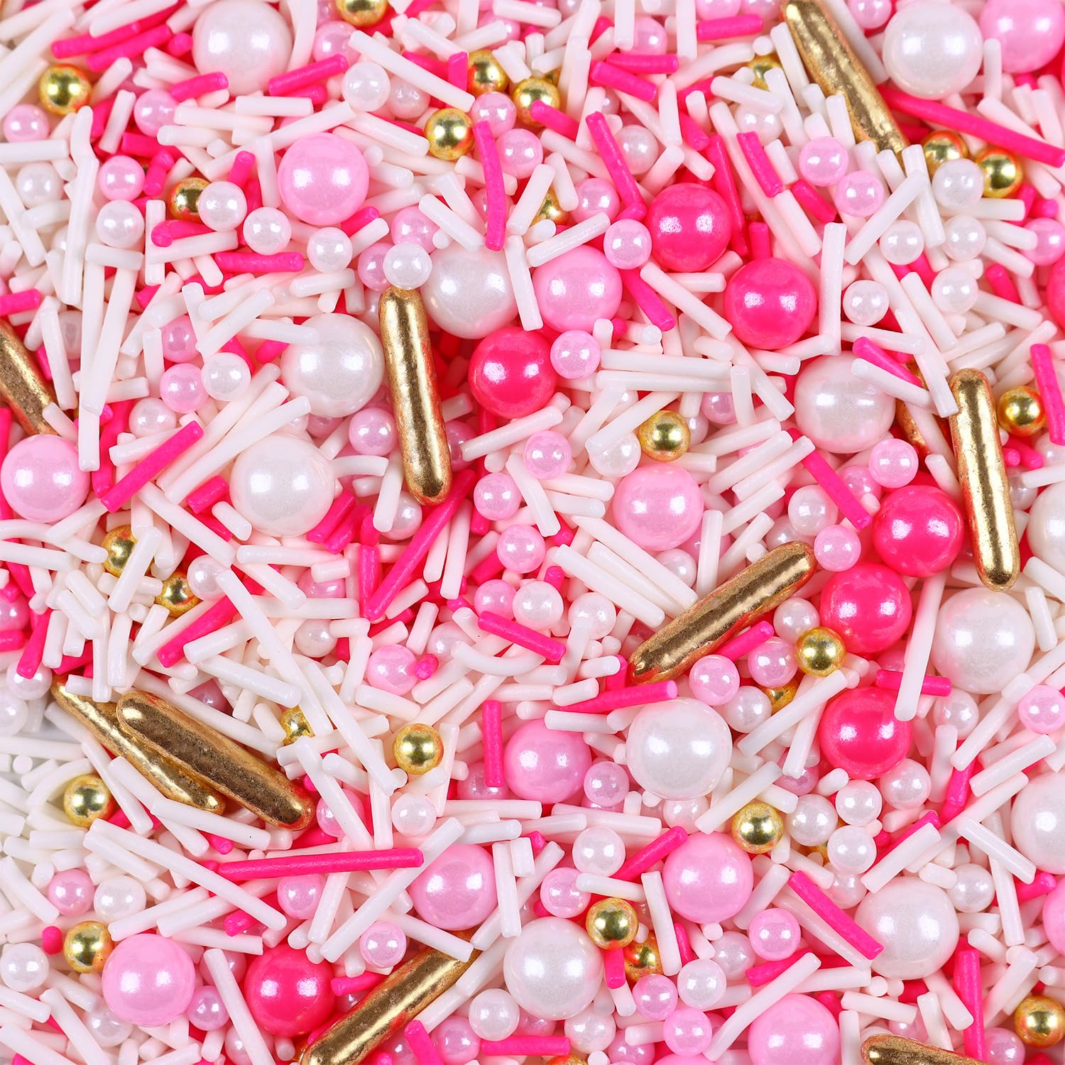 Q: What is the shelf life of these sprinkles?A: The shelf life of our pink sprinkles is 24 months. Please check the production date on the package to ensure freshness.