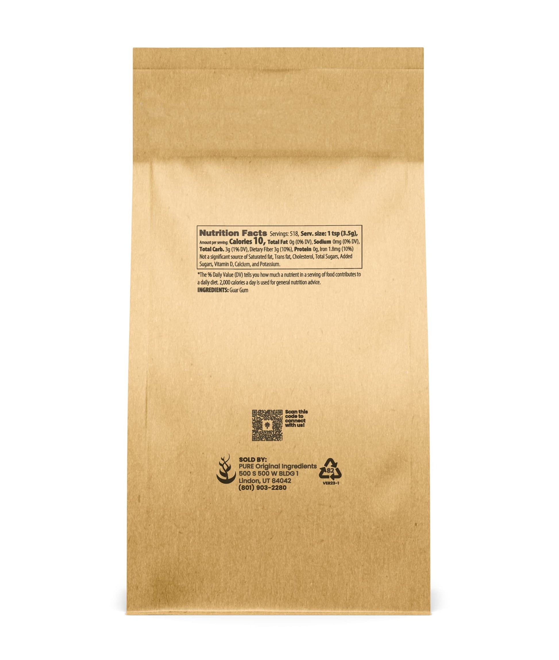 - Q: Is Pure Original Ingredients Guar Gum gluten-free and vegan? A: Yes, Pure Original Ingredients Guar Gum is both gluten-free and vegan. It contains no animal products or gluten, making it suitable for a variety of dietary preferences and restrictions.