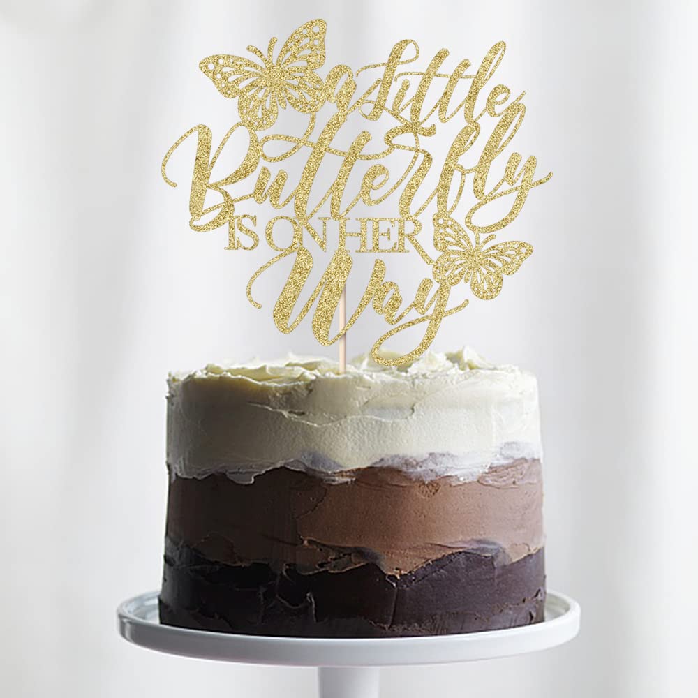 A Little Butterfly Is On Her Way Cake Topper,Butterfly Themed Cake Decoration,Great For Baby Shower, , Welcome Baby, Gender Reveal Party Decoration Supplies