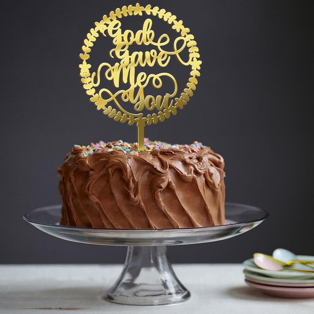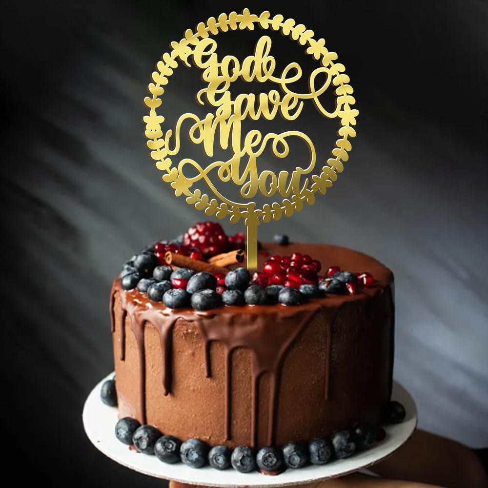 God Gave Me You Wedding Cake Topper, With Glitter Ring Bridal Shower Cake Pick Decorations,Wedding Engagement Theme,For Wedding Shower/Bachelorette/Hen Party Decorations Supplies