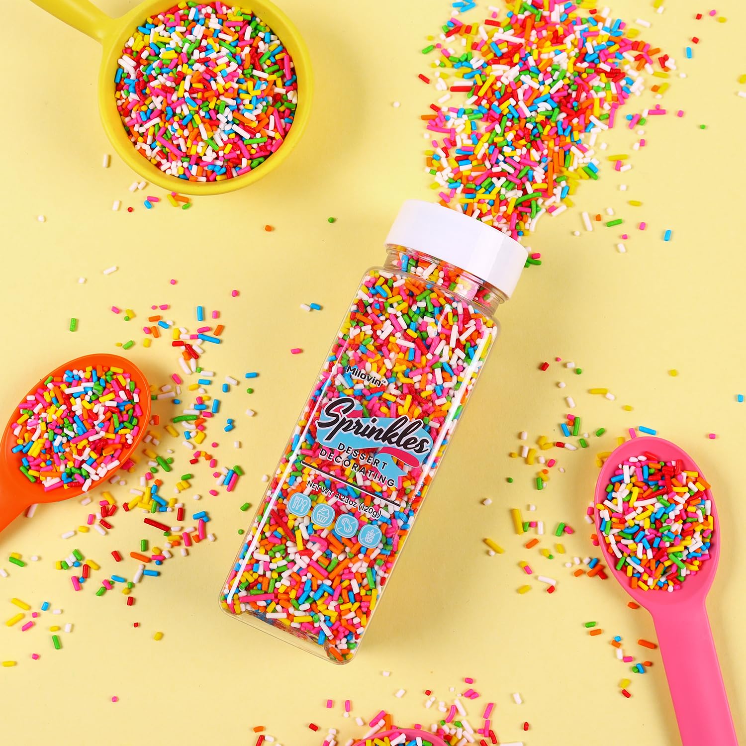 Q: How can I use rainbow sprinkles on my desserts?A: You can use rainbow sprinkles to decorate cakes, cupcakes, cookies, ice cream, and other desserts. For best results, apply them after baking using tweezers or spoons to prevent melting.