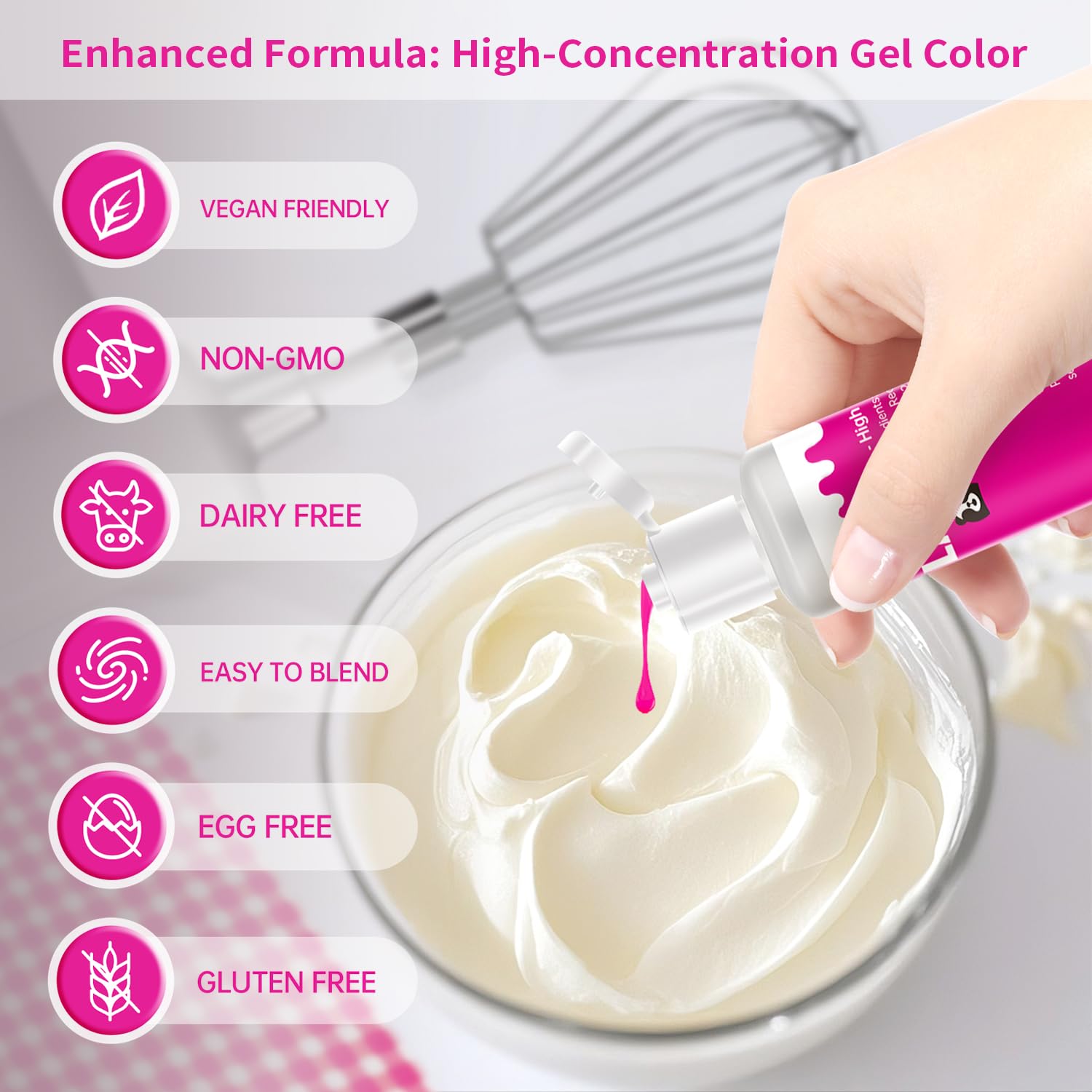 Q: How concentrated is this food dye compared to regular liquid food coloring?A: This gel food coloring is a true high concentrated gel, which means a little goes a long way compared to regular liquid food coloring, providing vibrant colors that do not fade when heated or frozen.